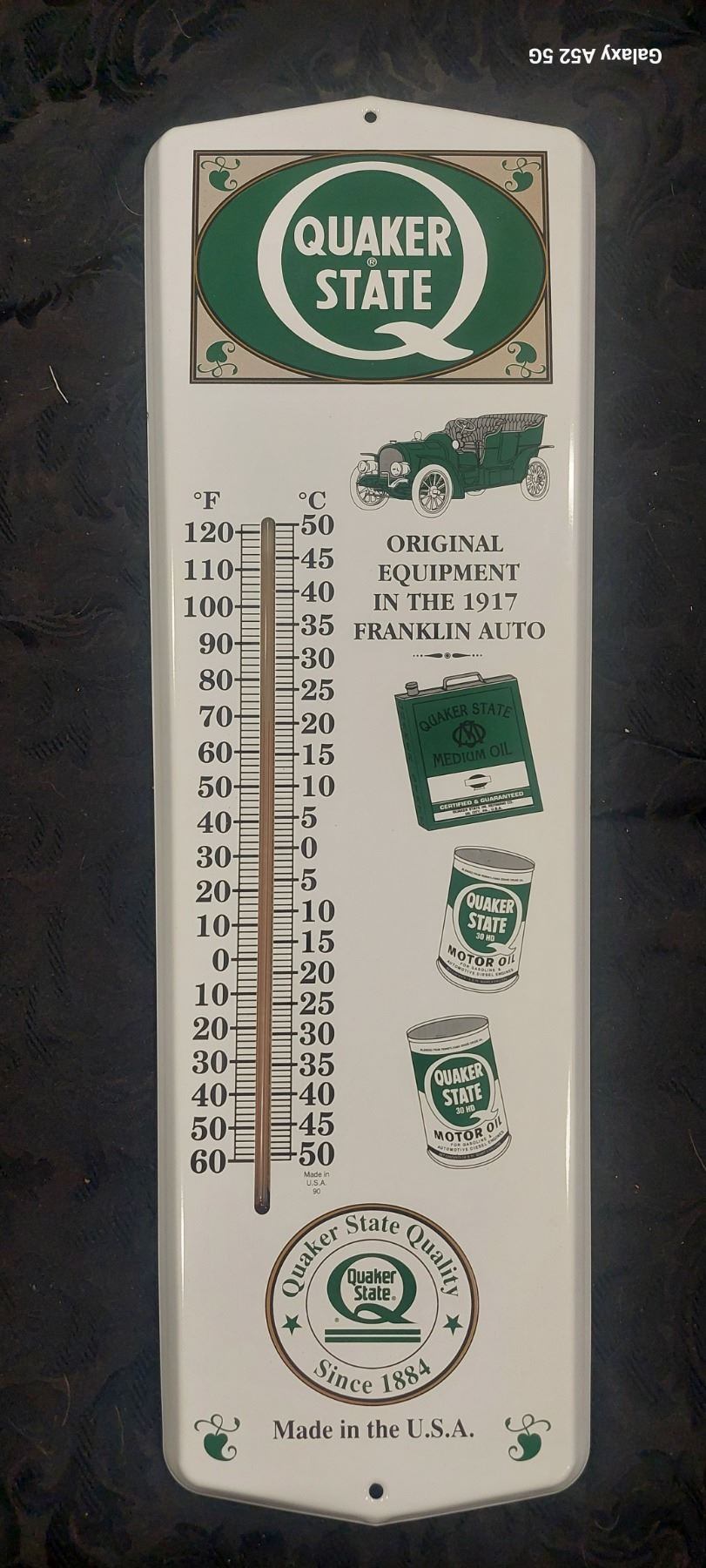 Vintage metal thermometer, Quaker State new in package Made in USA 35 years old 24"