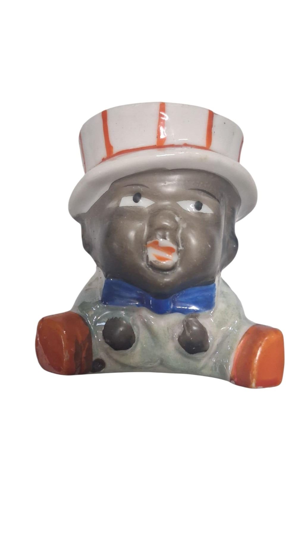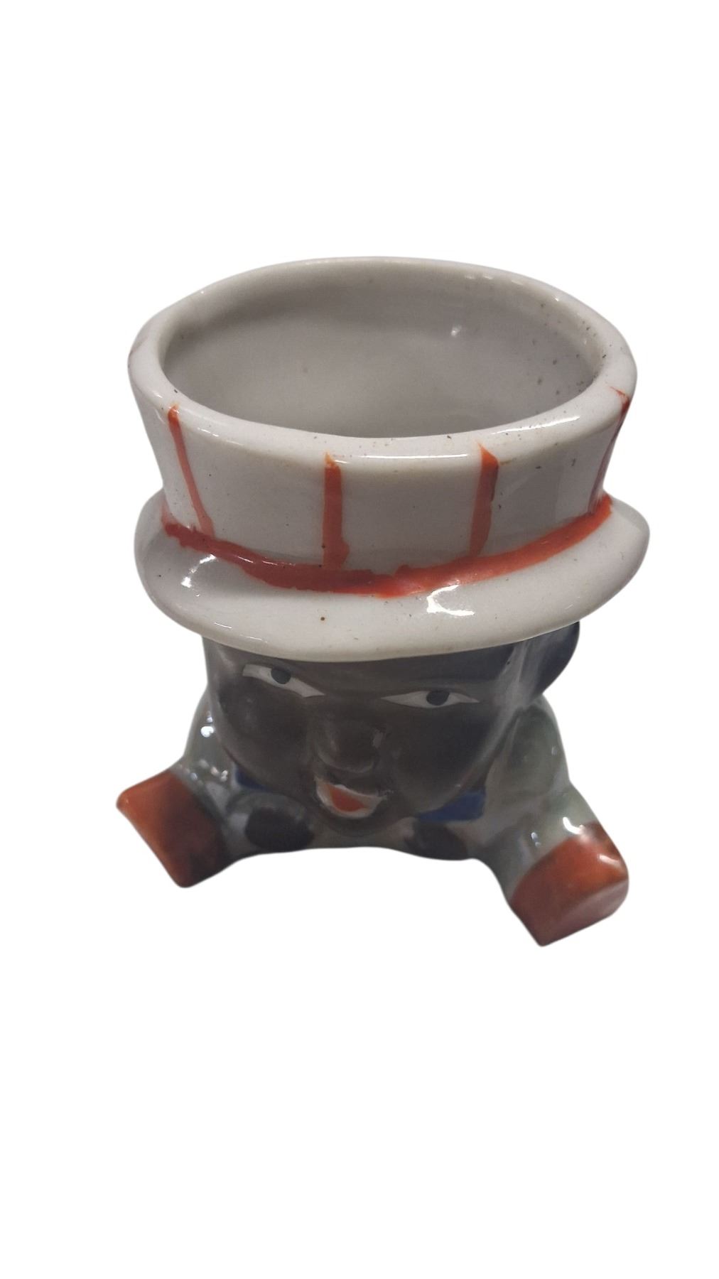 Vintage porcelain black Americana egg cup made in Japan 3"