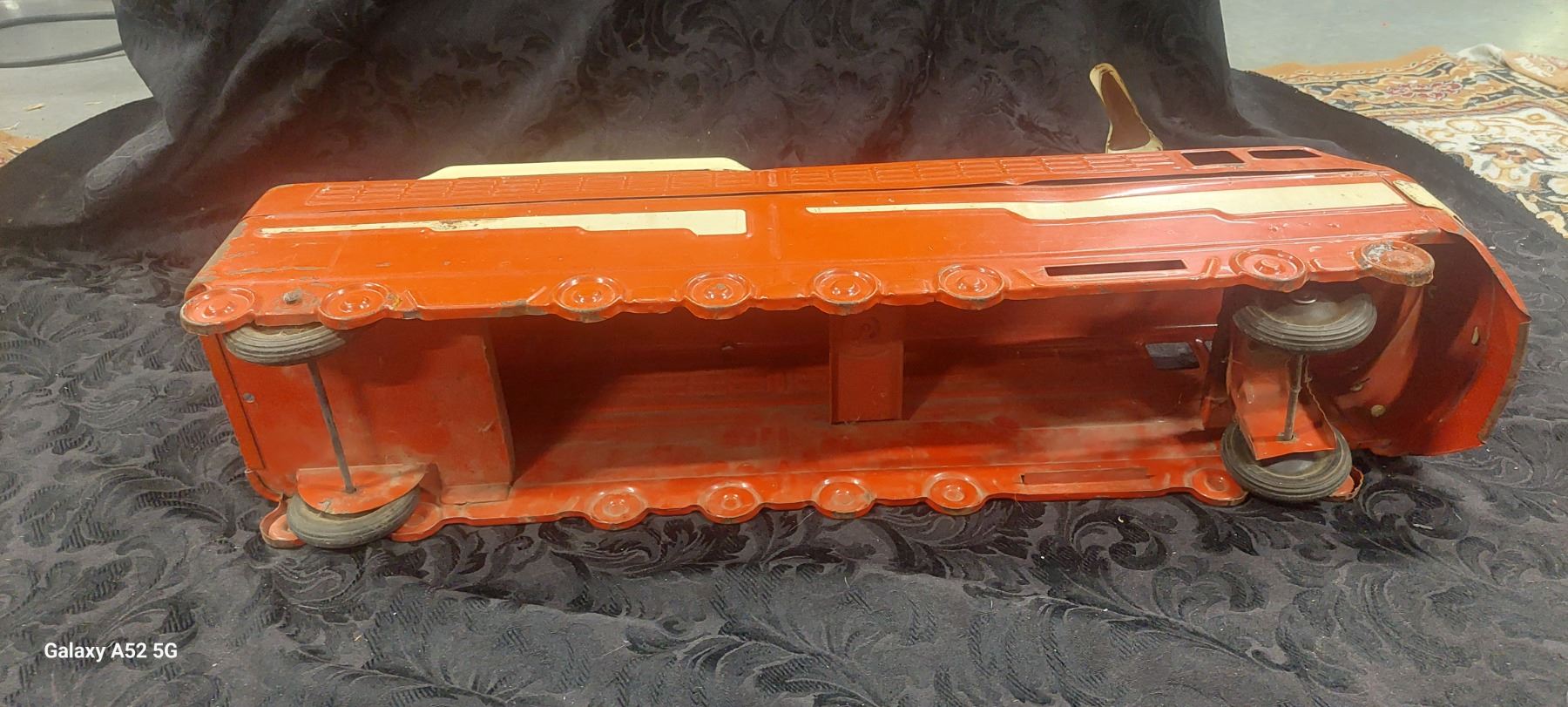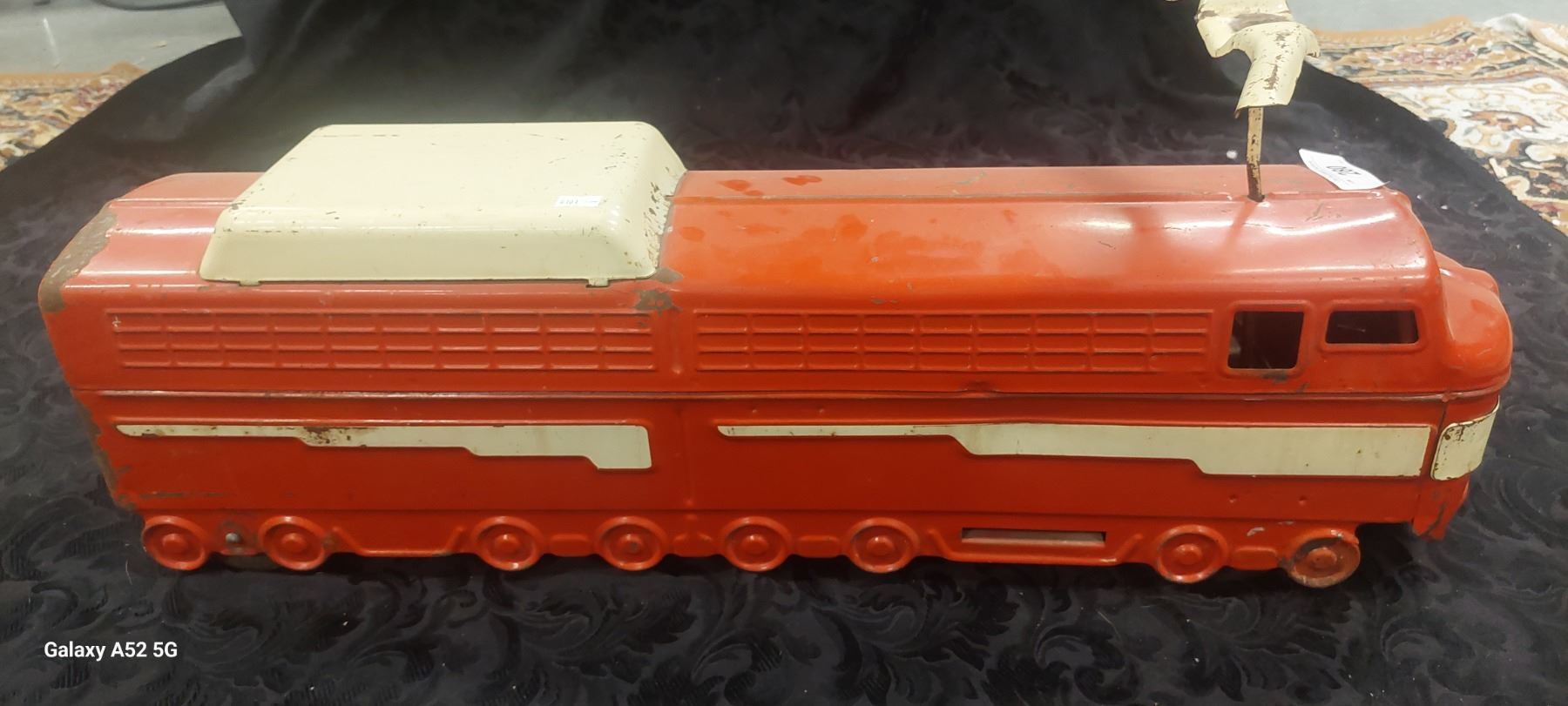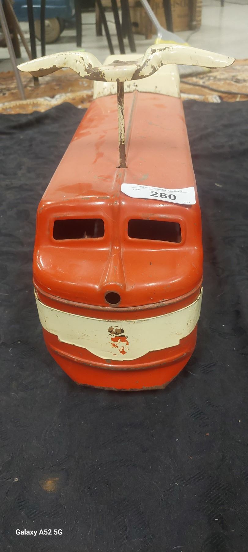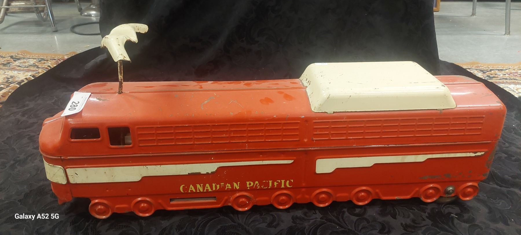 Vintage pressed steel Canadian Pacific ride on children's train 1950s 31" long