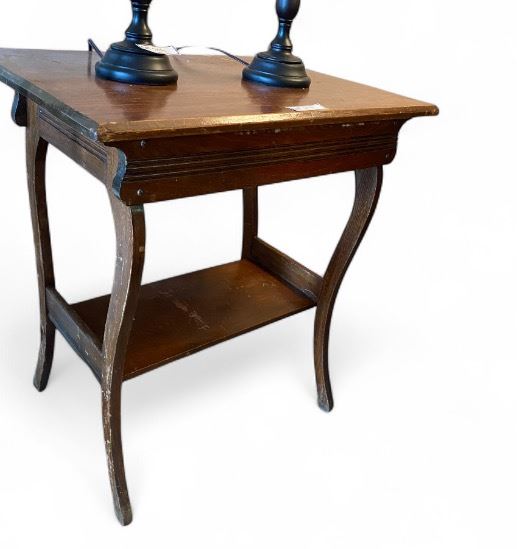 Vintage side table with lower shelf - approx. 28in wide x 20in depth x 30in height