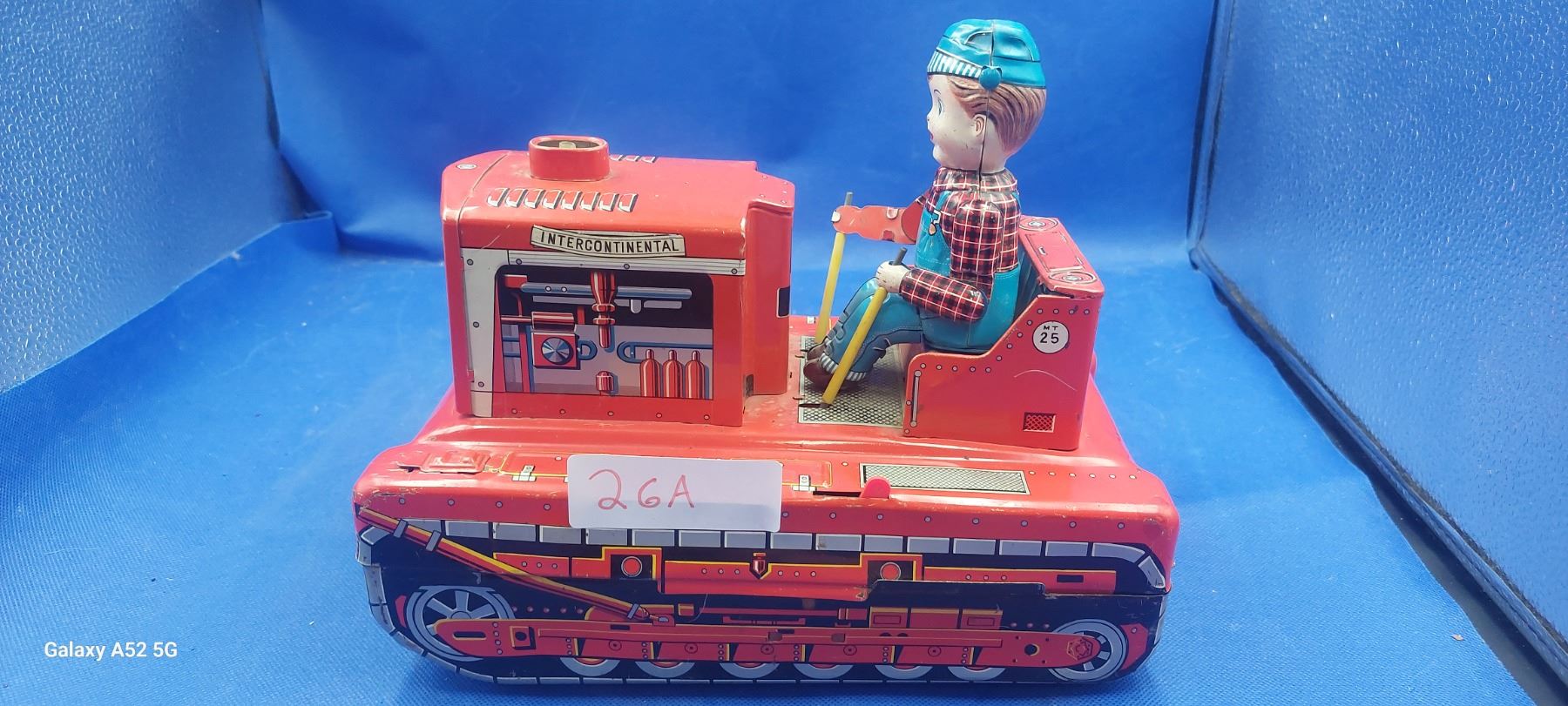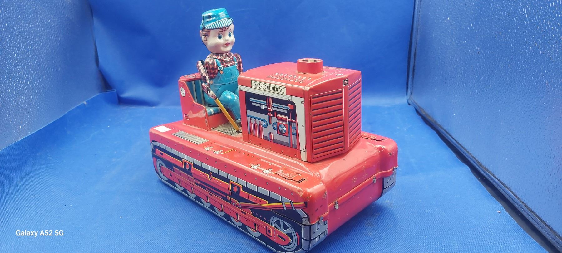 Vintage tin bulldozer toy, 60s Made in Japan 10.5" long