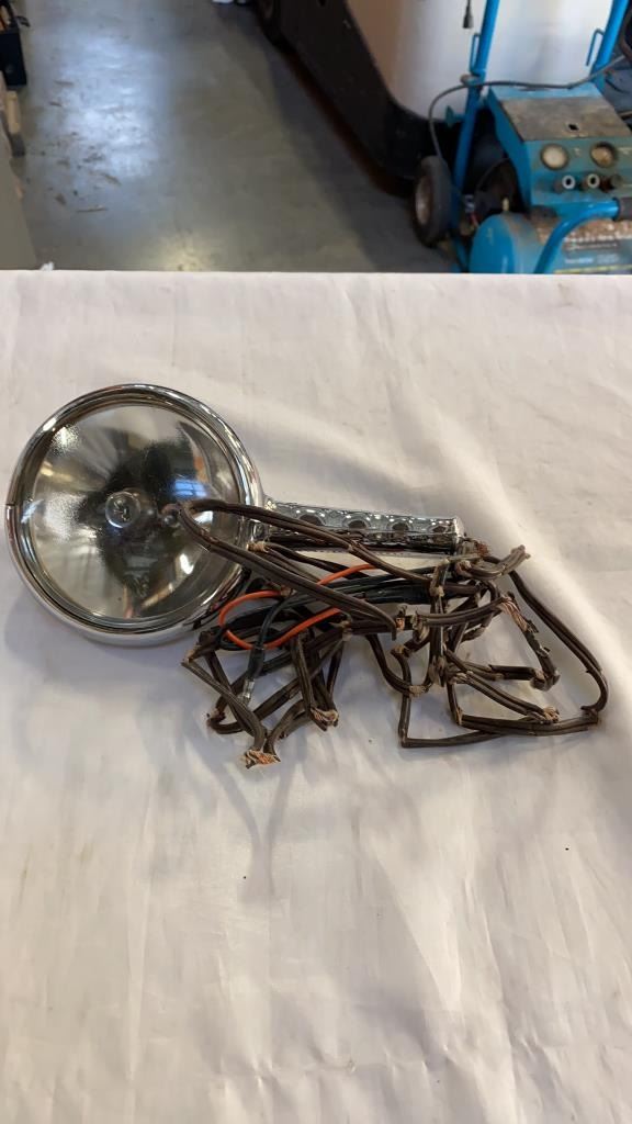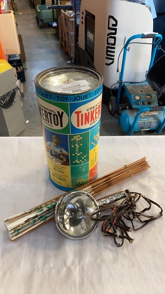 Vintage tinkertoy, automobile spotlight and japanese fan