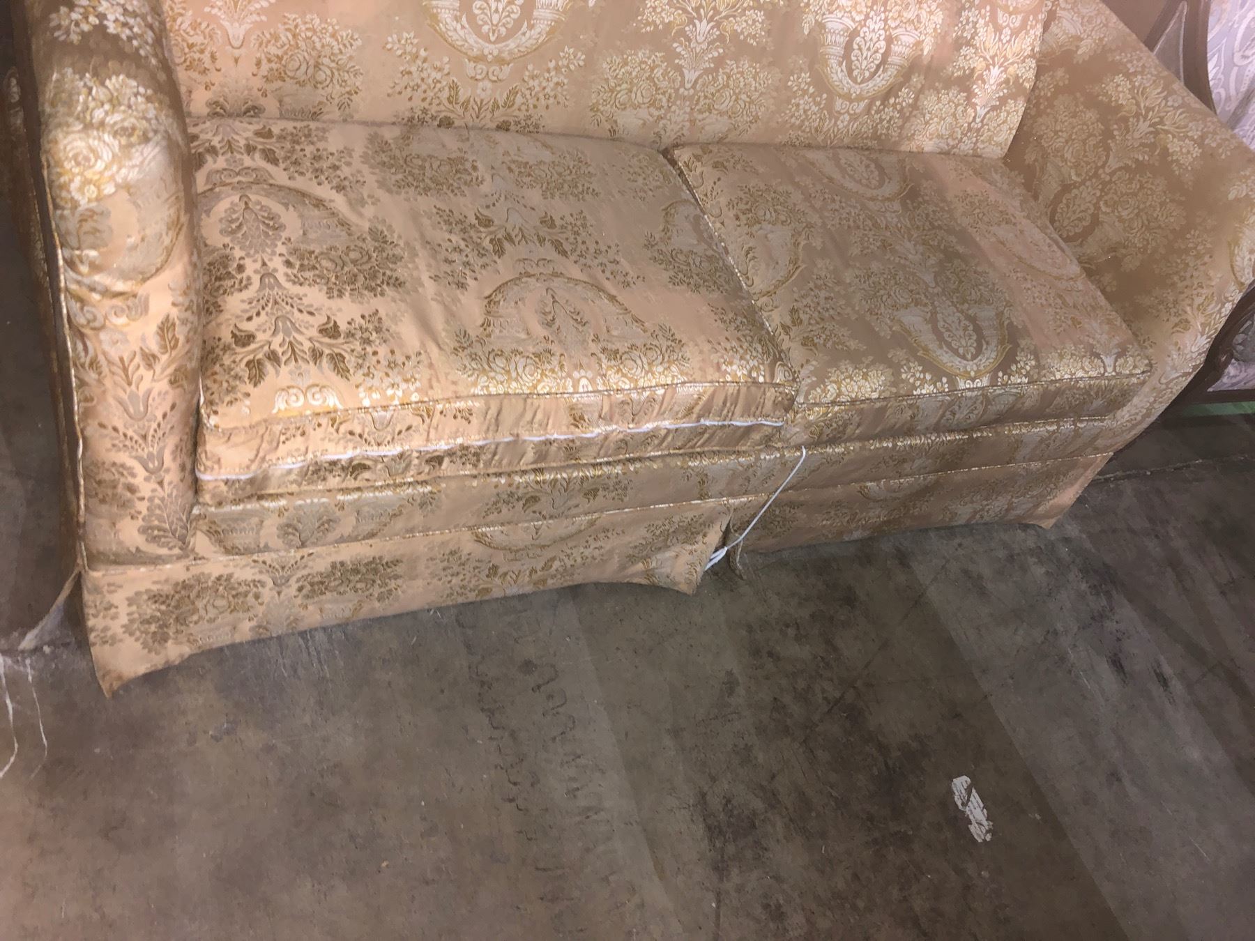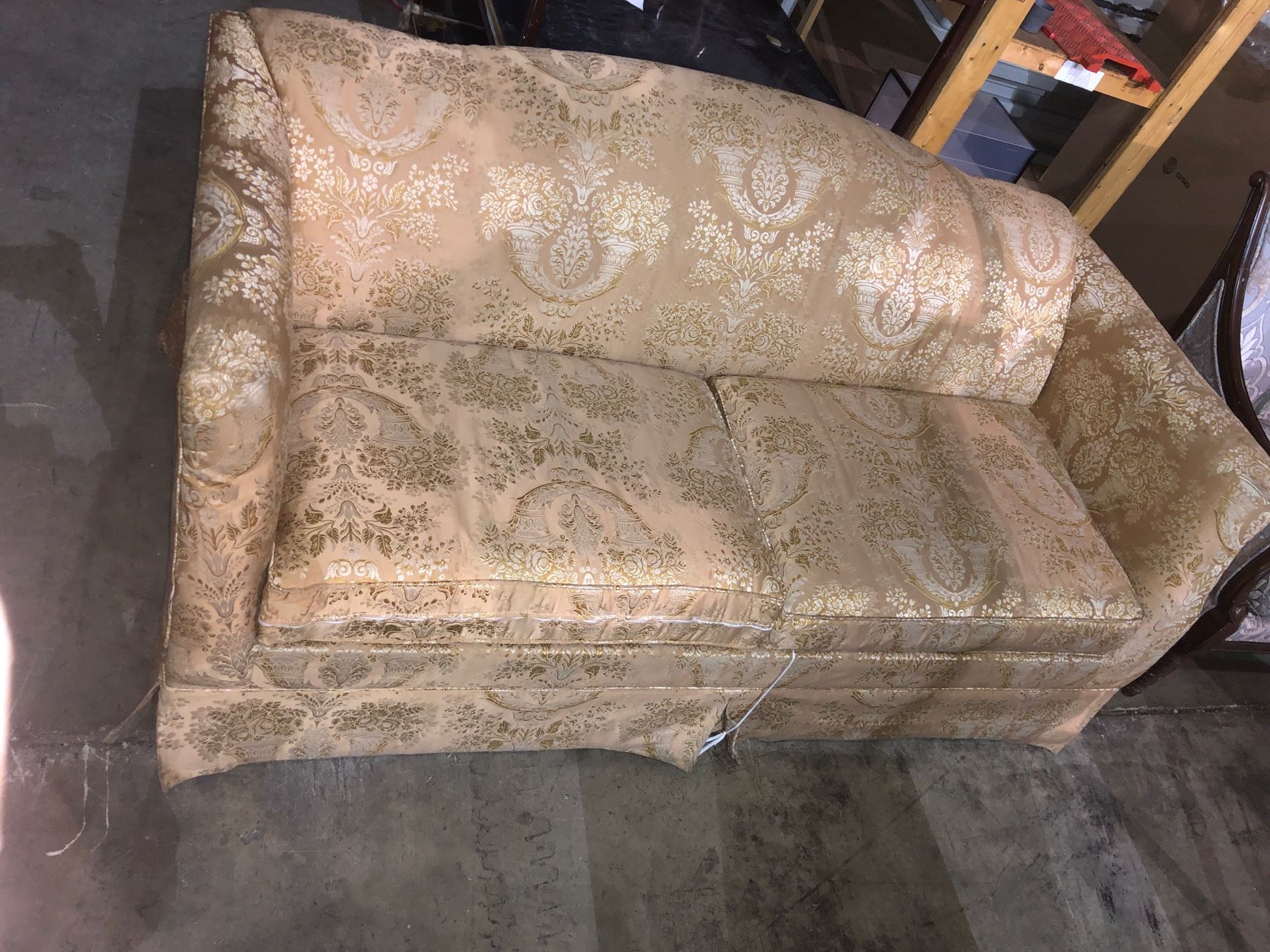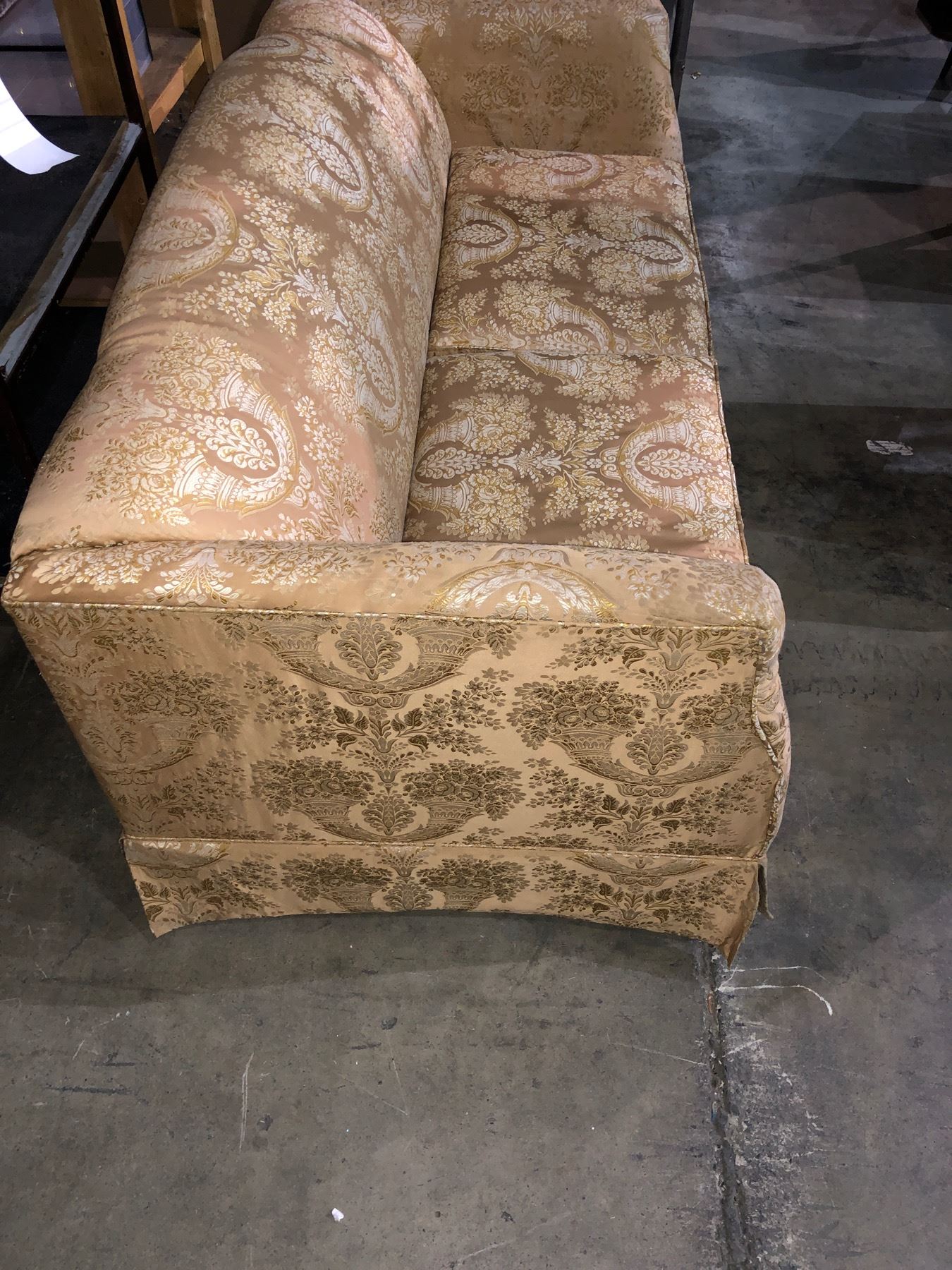Vintage upholstered two seat sofa (Approximately 6ft Wide x 3ft depth x 3ft high)