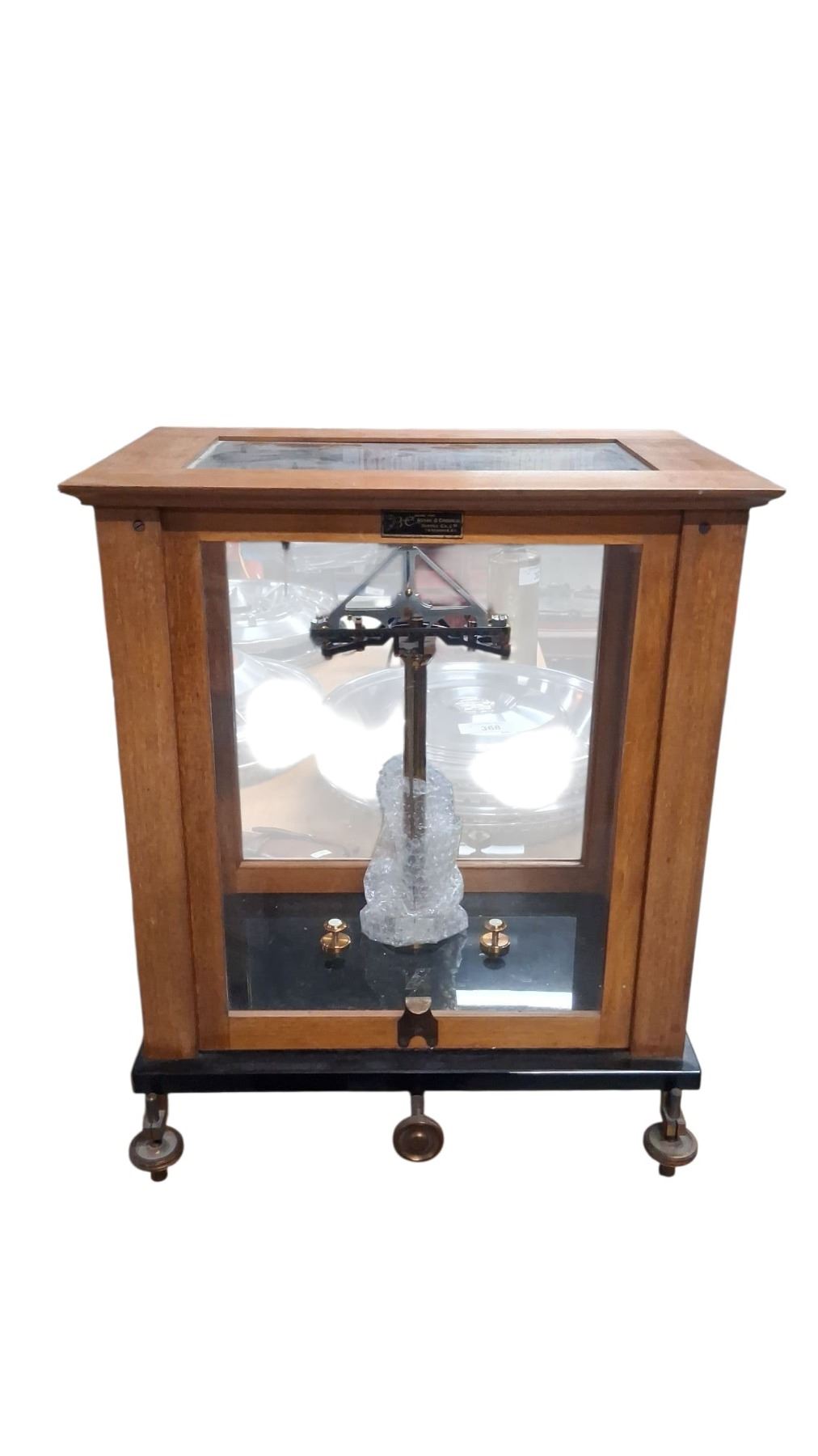 Vintage wood & glass Assayer's scale/instrument case 20"x16"x11"