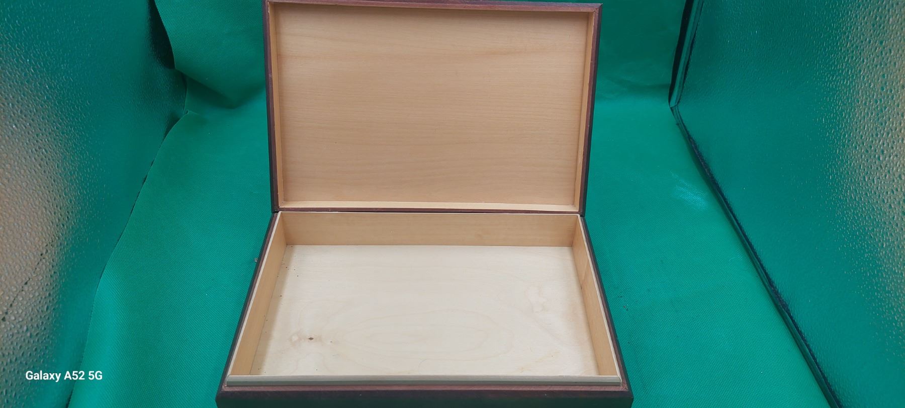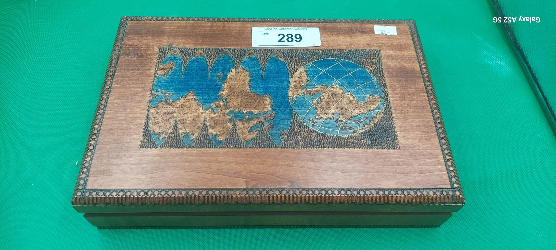 Vintage wooden box with lovely world map décor on lid 12"x8"3"