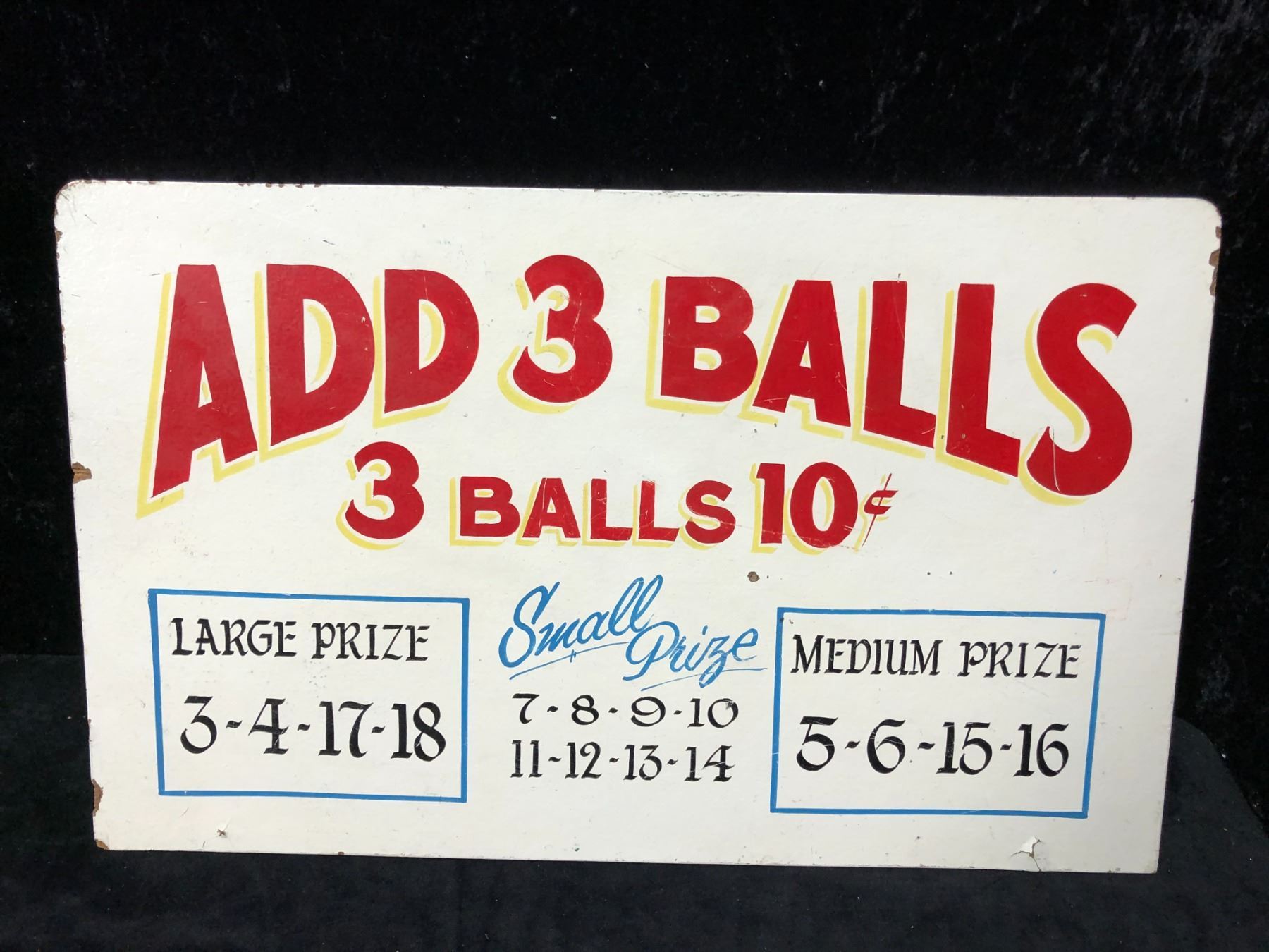 Vintage wooden carnival sign - Add 3 Balls 10¢ approx. 23in x 14in
