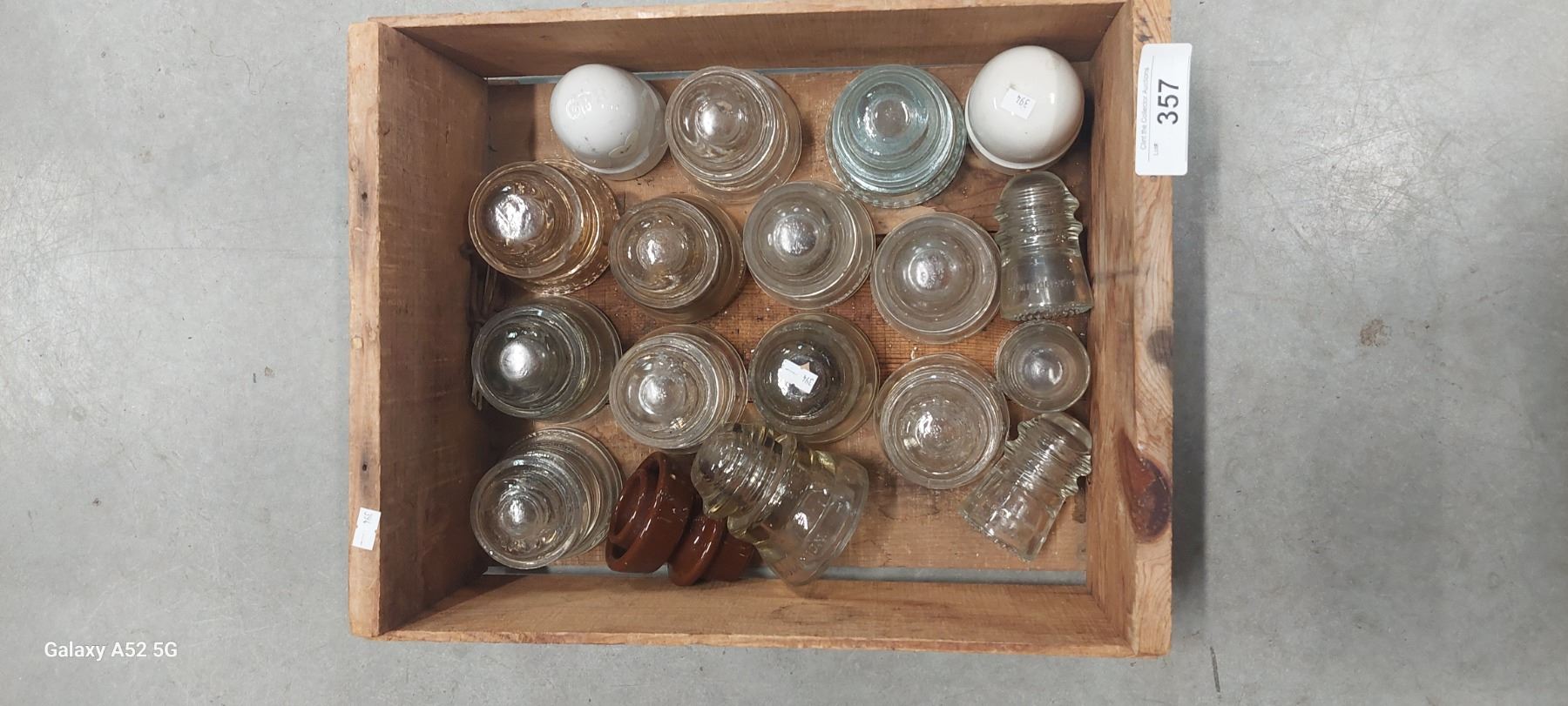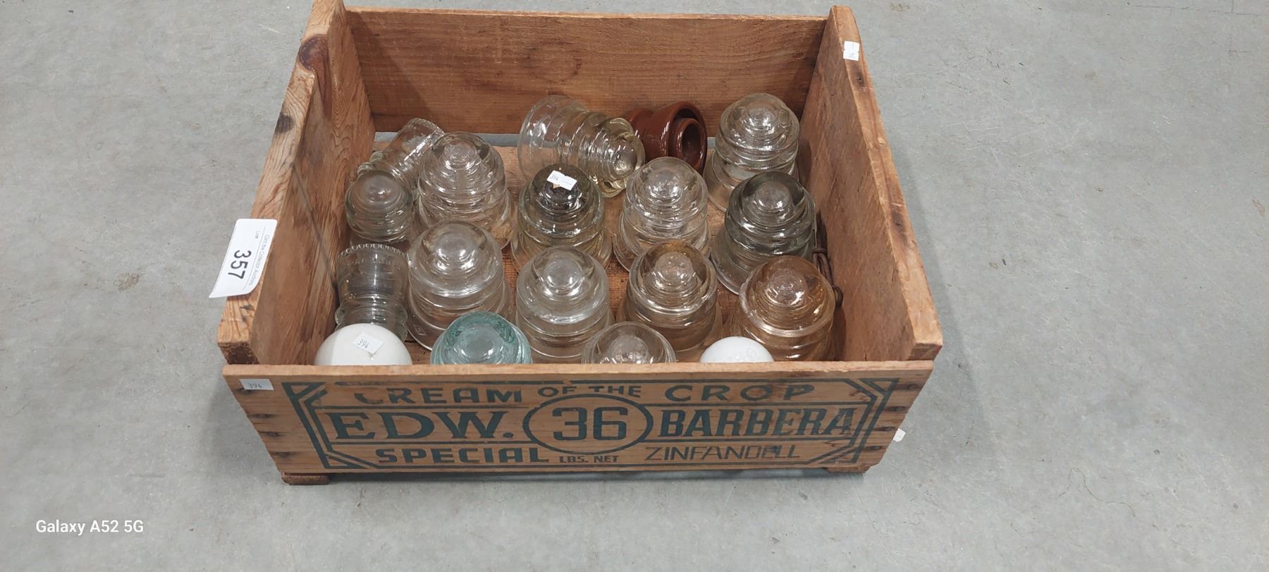 Vintage wooden crate Cream of the Crop, w/18 glass insulators