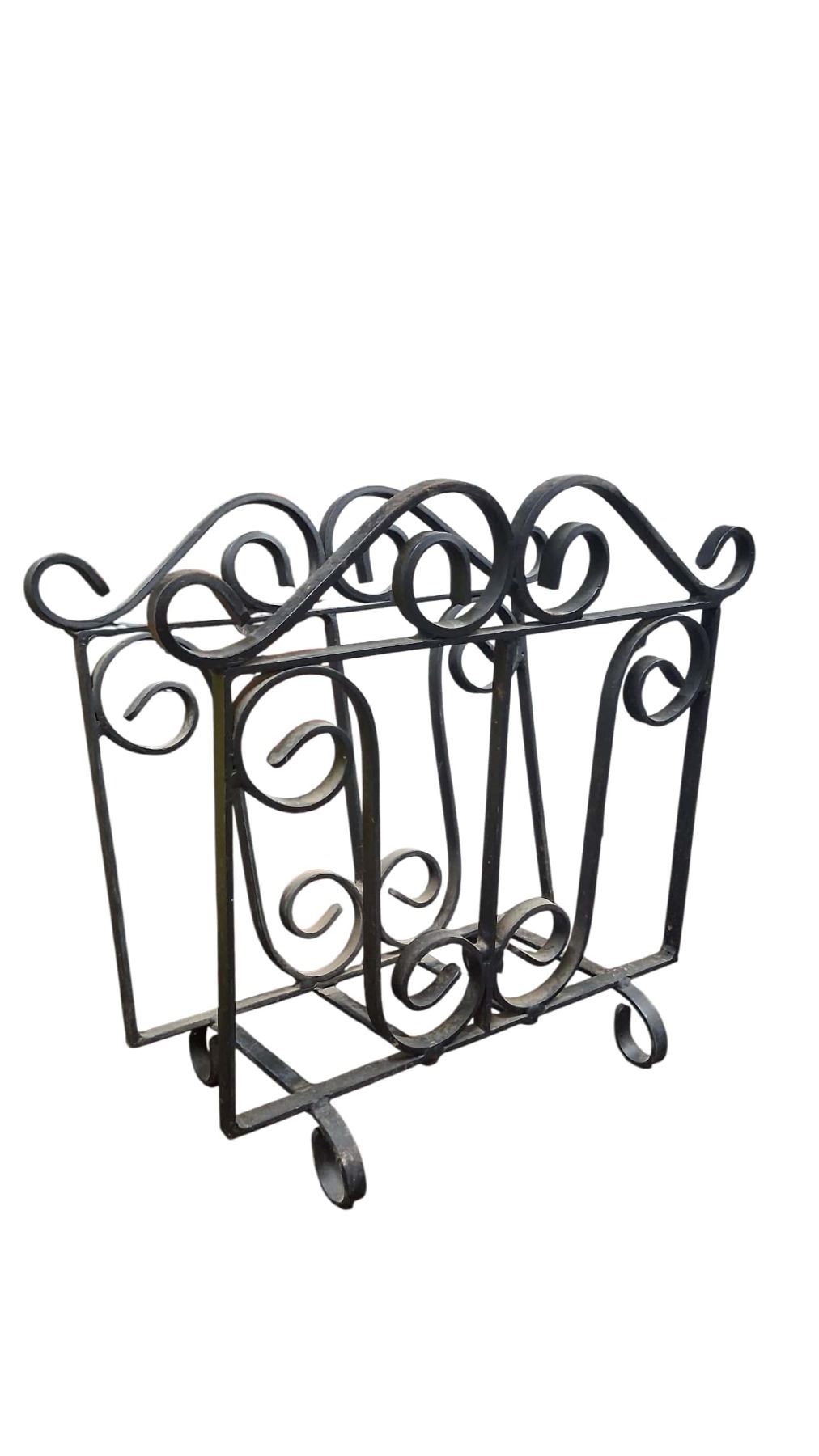 Vintage wrought iron magazine rack 16"x16"x7"