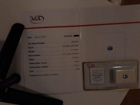 Vivid Blue Sapphire no heat, handcrafted, AGL 1.71 ct
