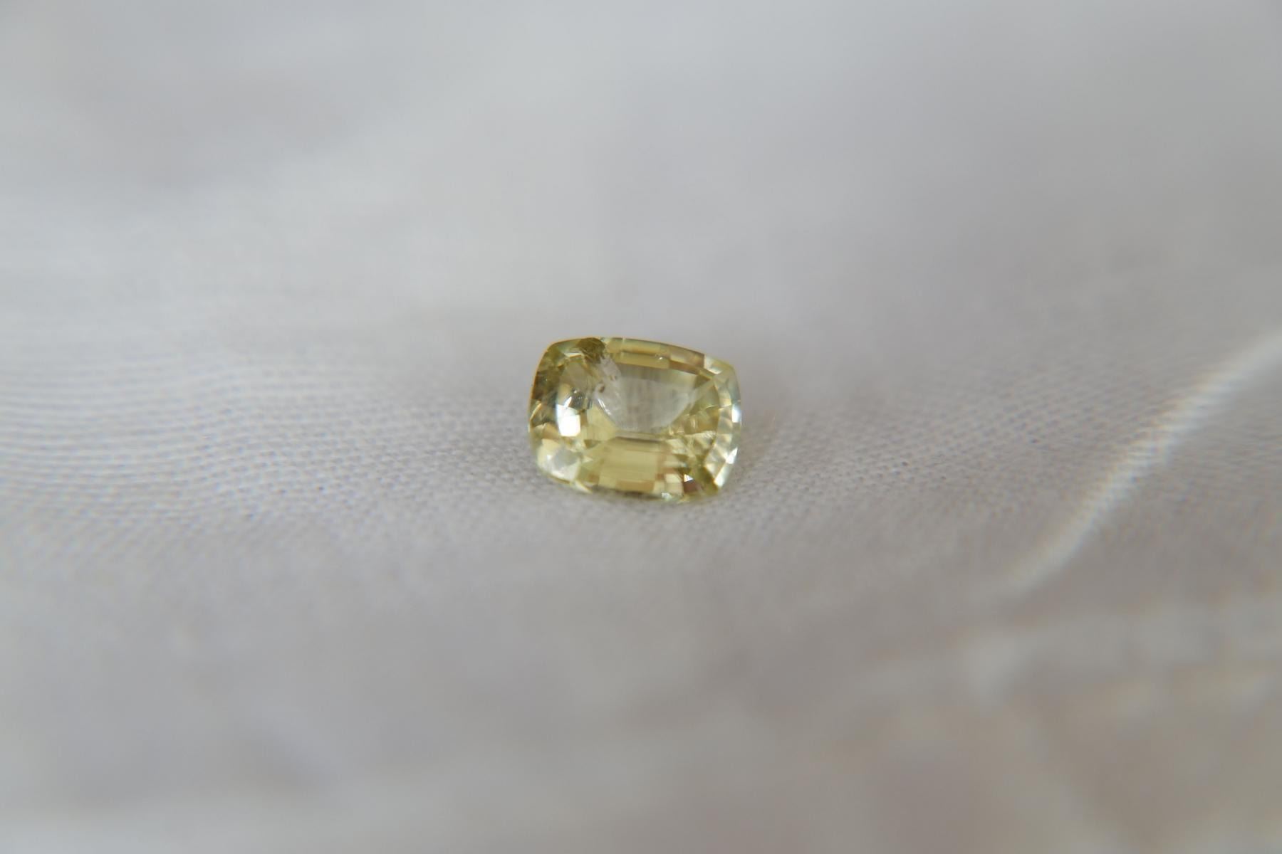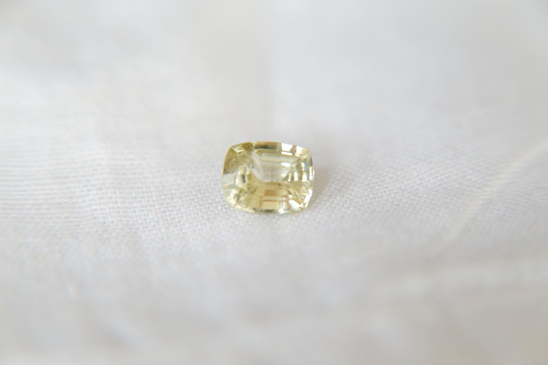 loose faceted precious sapphire, brand new without tags from Sri Lanka. GEMSTONE TYPE: Genuine Sri Lanka, Ceylon sapphireRECOMMENDED JEWELRY SETTINGS: Solitaire Ring, Women Rings, Sapphire solitaire, BraceletsCERTIFICATE: CorundumStones Mining Genuine Gem Lab report included. GIA/AGL/IGL/GRS Gem Lab reports/memos available, please specify during checkout.ORIGIN: Sri LankaCARAT SIZE: 1.09DIMENSIONS: Length 6.42 x Width 5.15 x Depth 3.06 mmSHAPE/CUT: premium handcrafted checkerboard tableless lustrous finish, cushion rectangular cutTREATMENTS: None (No Enhancement)COLOR/COLOUR: Vivid Fragrant Citron YellowGIA COLOR CODE: YCLARITY: VS (eyeclean)SATURATION: 4=mstTONE: 4=mlFINISH & POLISH: excellent