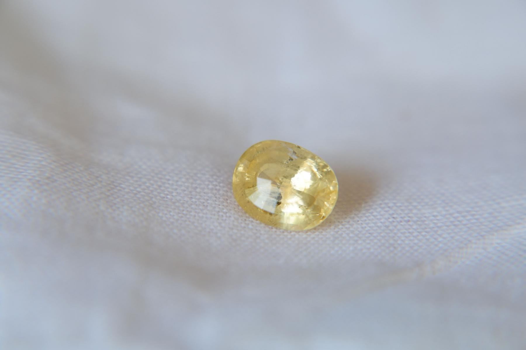 loose faceted precious sapphire, brand new without tags from Sri Lanka. GEMSTONE TYPE: Genuine Sri Lanka, Ceylon sapphireRECOMMENDED JEWELRY SETTINGS: Men Rings, Men Jewelry, Women Vintage Rings, Art JewelryCERTIFICATE: CorundumStones Mining Genuine Gem Lab report included. GIA/AGL/IGL/GRS Gem Lab reports/memos available, please specify during checkout.ORIGIN: Sri LankaCARAT SIZE: 1.96DIMENSIONS: Length 8.02 x Width 6.20 x Depth 4.65 mmSHAPE/CUT: premium handcrafted oval cut with lustrous finish, oval cutTREATMENTS: None (No Enhancement)COLOR/COLOUR: Vivid Fragrant Citron YellowGIA COLOR CODE: YCLARITY: VS (eyeclean)SATURATION: 4=mstTONE: 4=mlFINISH & POLISH: excellent