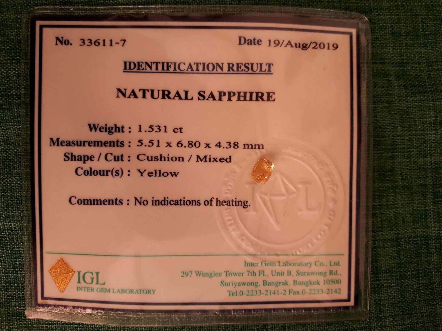 CERTIFICATE: IGL/GIA Lab Brief included. Any other custom certificate paid by the buyer
