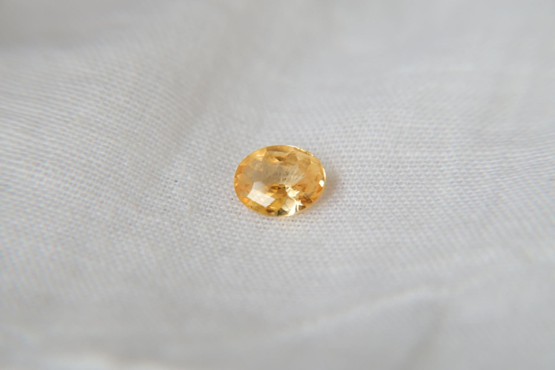 loose faceted precious sapphire, brand new without tags from Sri Lanka. GEMSTONE TYPE: Genuine Sri Lanka, Ceylon sapphireRECOMMENDED JEWELRY SETTINGS: Solitaire Ring, Women Rings, Sapphire solitaire, BraceletsCERTIFICATE: CorundumStones Mining Genuine Gem Lab report included. GIA/AGL/IGL/GRS Gem Lab reports/memos available, please specify during checkout.ORIGIN: Sri LankaCARAT SIZE: 0.6DIMENSIONS: Length 6.27 x Width 4.91 x Depth 2.44 mmSHAPE/CUT: premium handcrafted oval checkerboard, oval cutTREATMENTS: None (No Enhancement)COLOR/COLOUR: Vivid YellowOrangeGIA COLOR CODE: YOCLARITY: VS (eyeclean)SATURATION: 4=mstTONE: 4=mlFINISH & POLISH: excellent