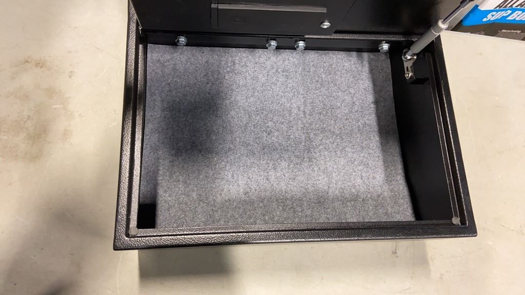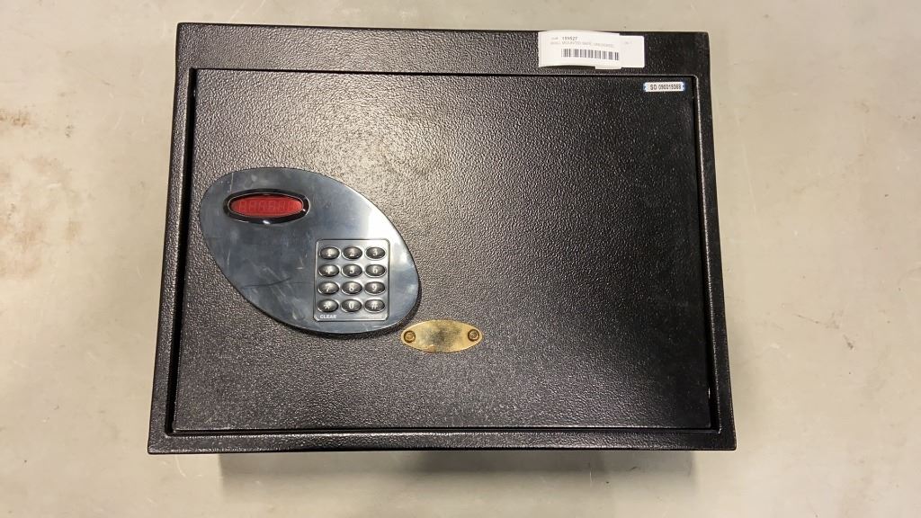 WALL MOUNTED SAFE, UNLOCKED, PASSWORD CAN BE RESET