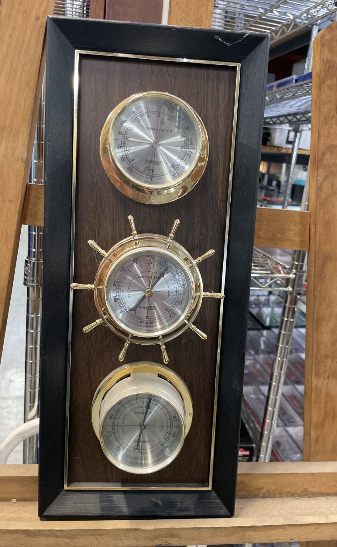 WALL MOUNTED SPRINGFIELD THERMOMETER, BAROMETER & HUMIDITY STATION, PANASONIC PENCIL SHARPENER,