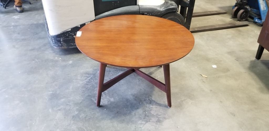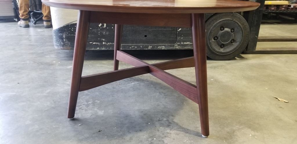 WALNUT FINISH MODERN ROUND COFFEE TABLE , 36 INCH DIAMETER