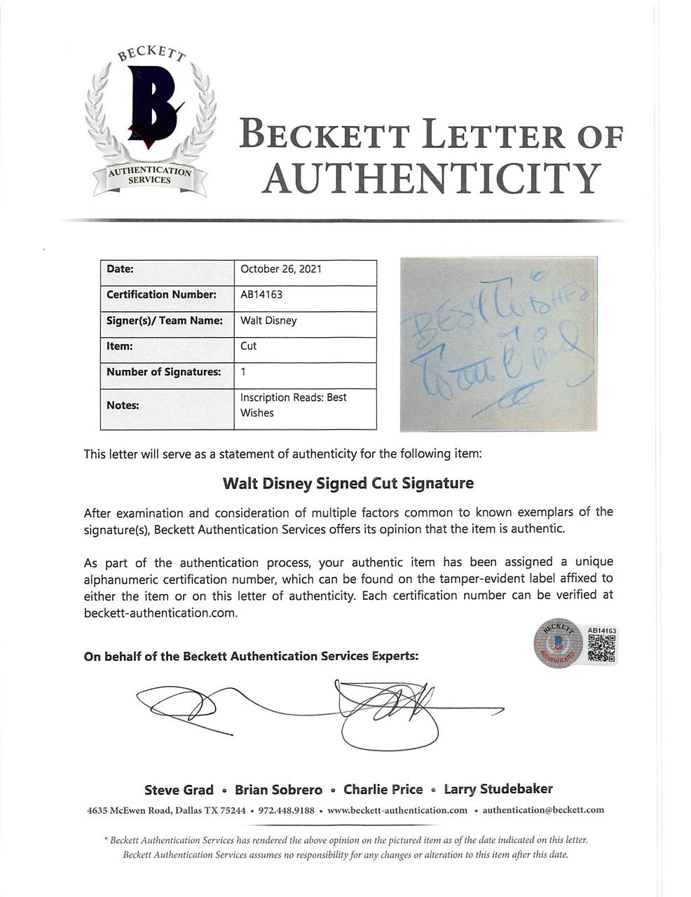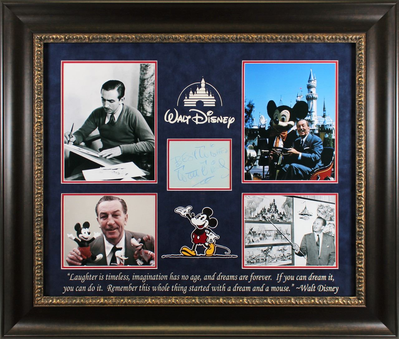 WALT DISNEY SIGNED AND CUSTOM FRAMED CUT COLLAGE 24 X 24 (BECKETT LOA)