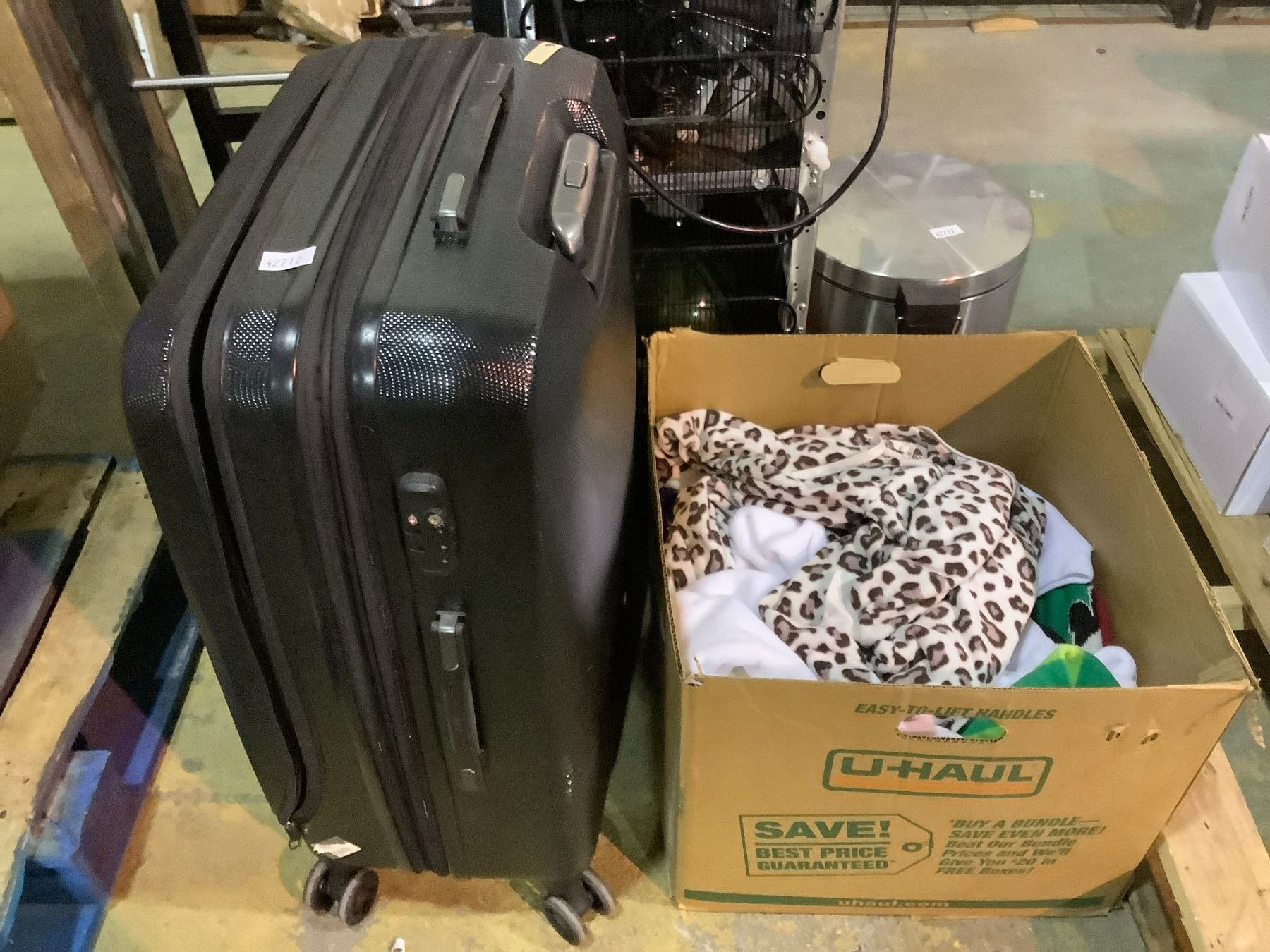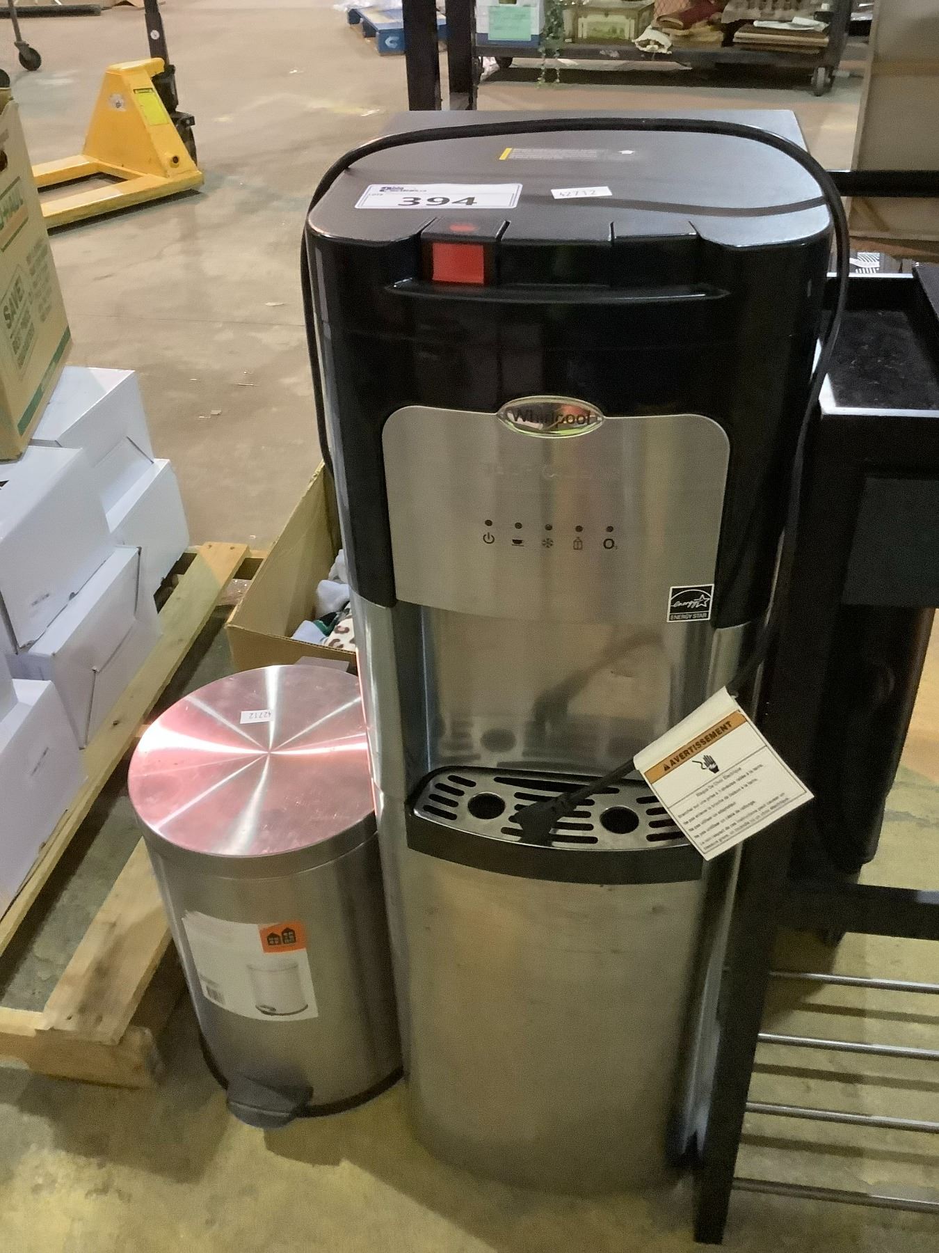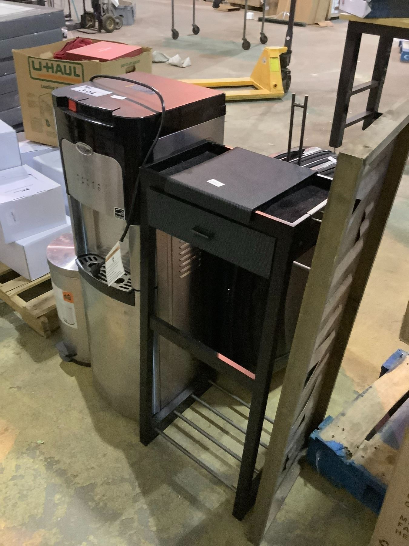 WASTE BIN, WHIRLPOOL HOT/COLD WATER DISPENSER, SHELVING, BOX OF CLOTHING, LUGGAGE & FAMILY SIGN