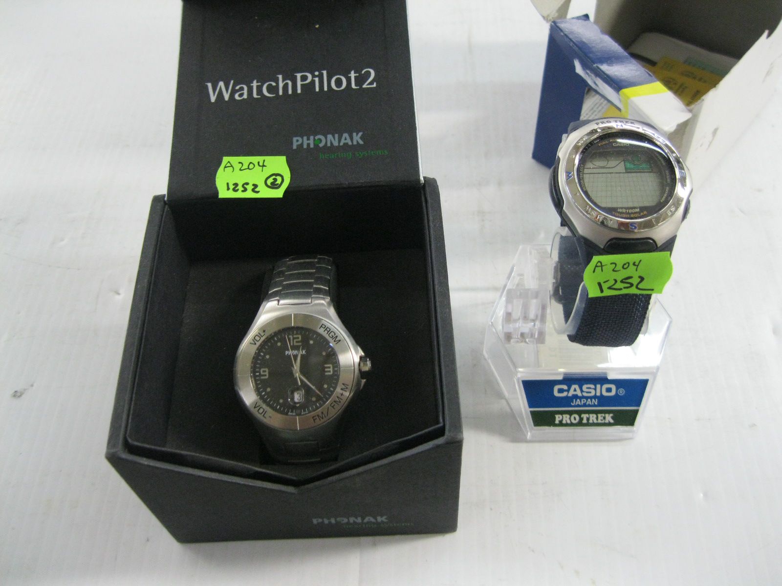 WATCH PILOT 2 PHONAK WATCH & A PRO TREK WATCH, BOTH NEED BATTERIES