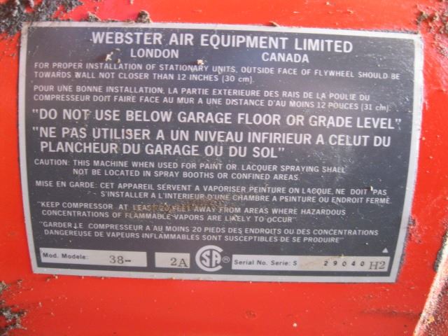 WEBSTER AIR COMPRESSOR