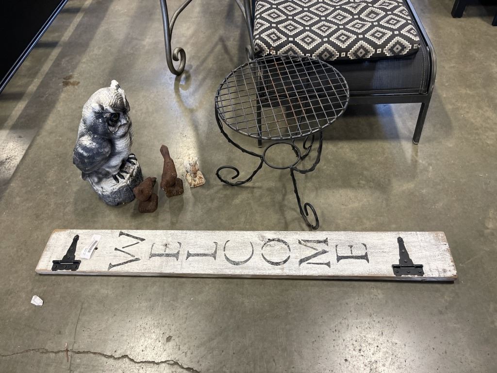 WELCOME SIGN, CAST IRON BIRDS, OWL