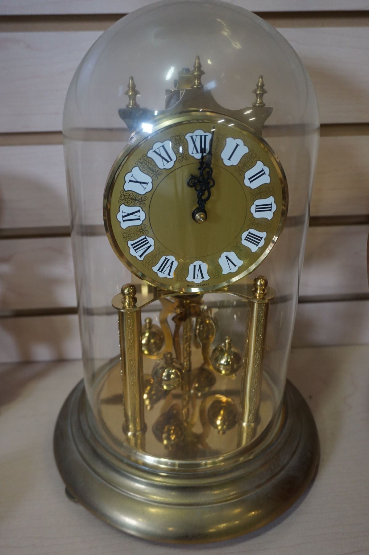 WEST GERMANY ANTIQUE GLASS DOME MECHANICAL CLOCK