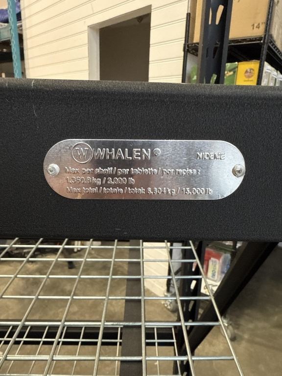 WHALEN ONE SECTION OF RACKING/METAL SHELVING, APPROX. 6'W X 2'D X 7'T, MAX WEIGHT 15,000LBS TOTAL, 3,000LB PER SHELF MAX