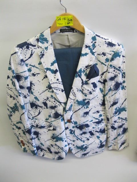 WHITE, BLUE & GREEN PATTERN JACKET WITH PANTS