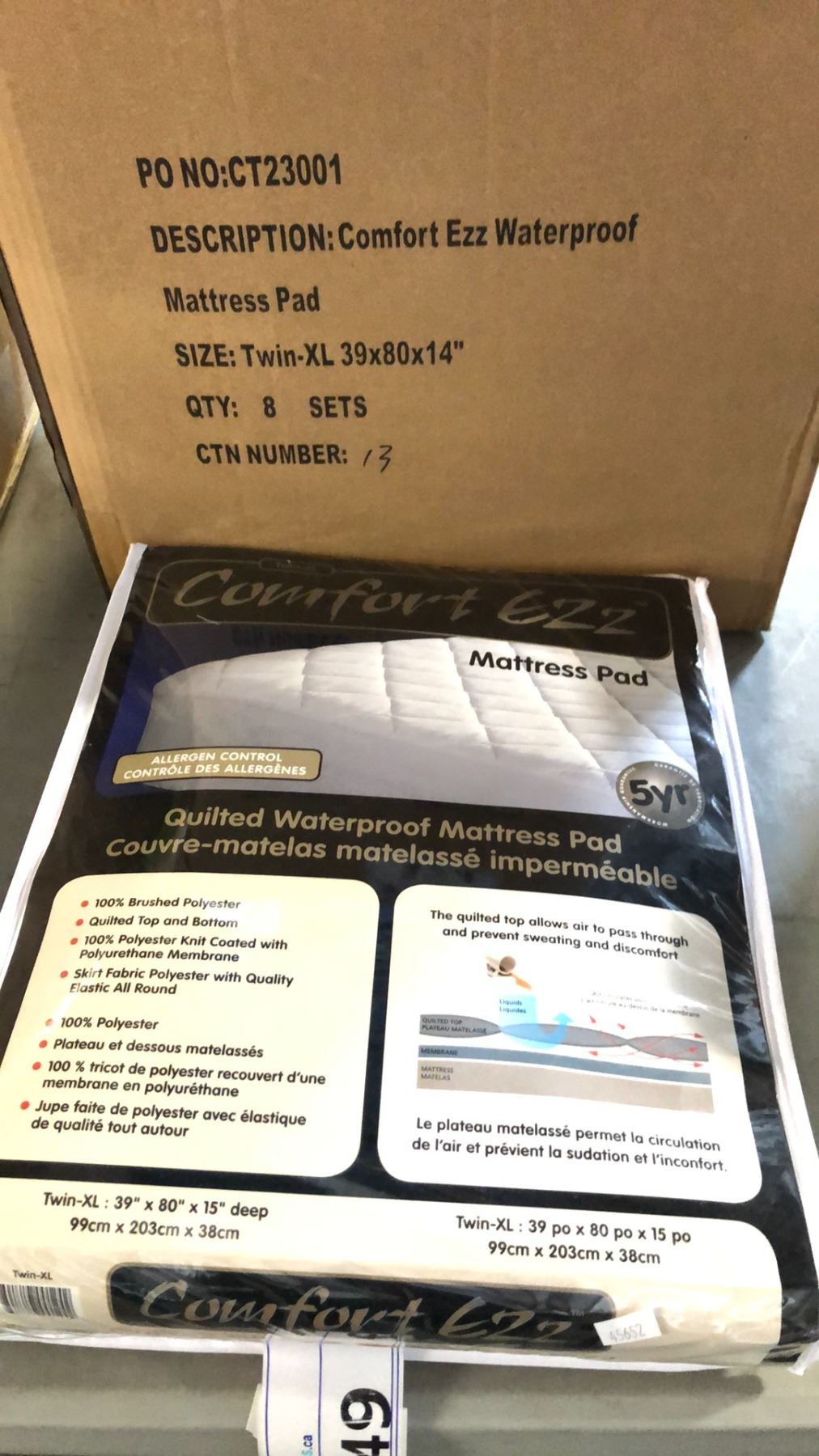 WHITE COMFORT EZZ WATERPROOF POLYESTER MATTRESS PAD TWIN D39" X W75" X H14" APPROX. 8 SETS