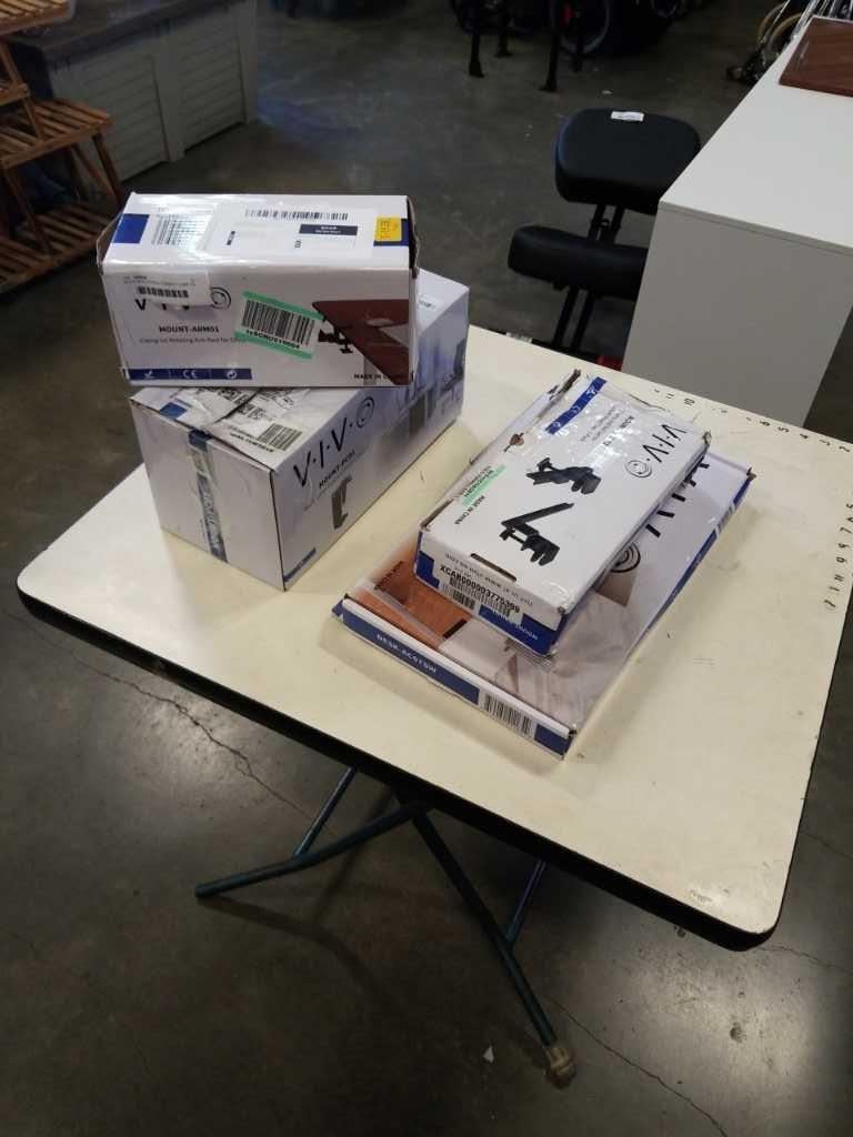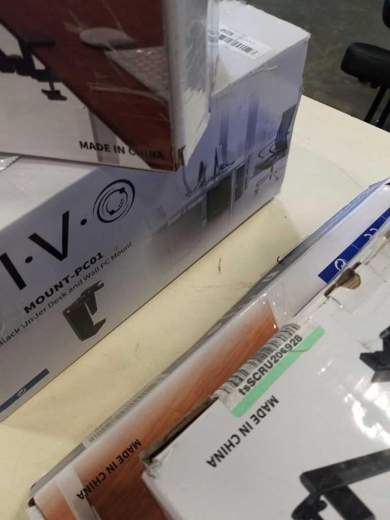 WHITE DESK CORNER CONNECT, CAMP ON RAIL FOR TRAY, UNDER DESK PC MOUNT, AND CLAMP ON ROTATING ARM RES