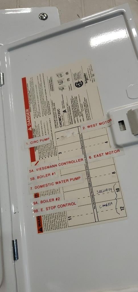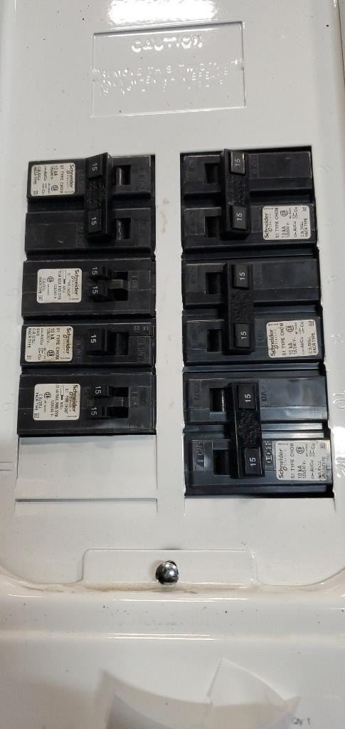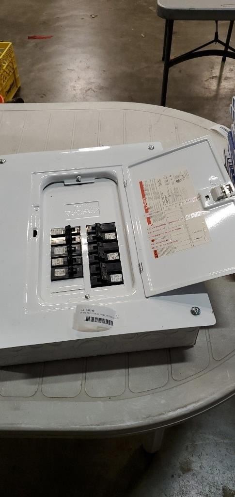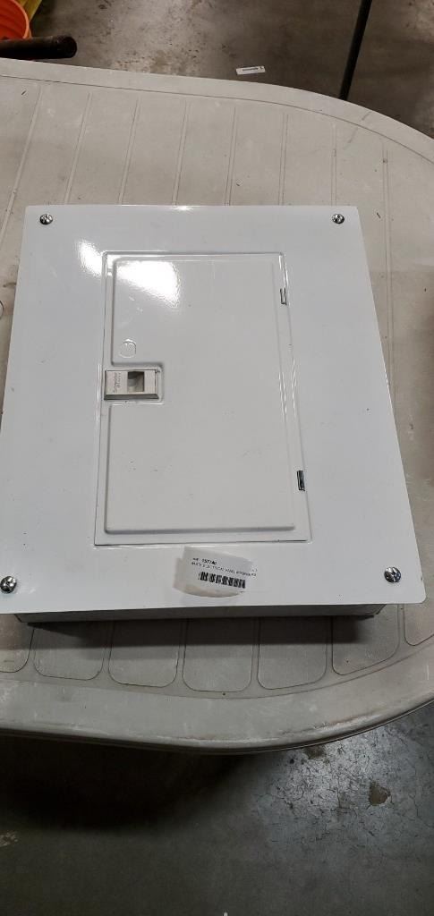 WHITE ELECTRICAL PANEL WITH BREAKERS