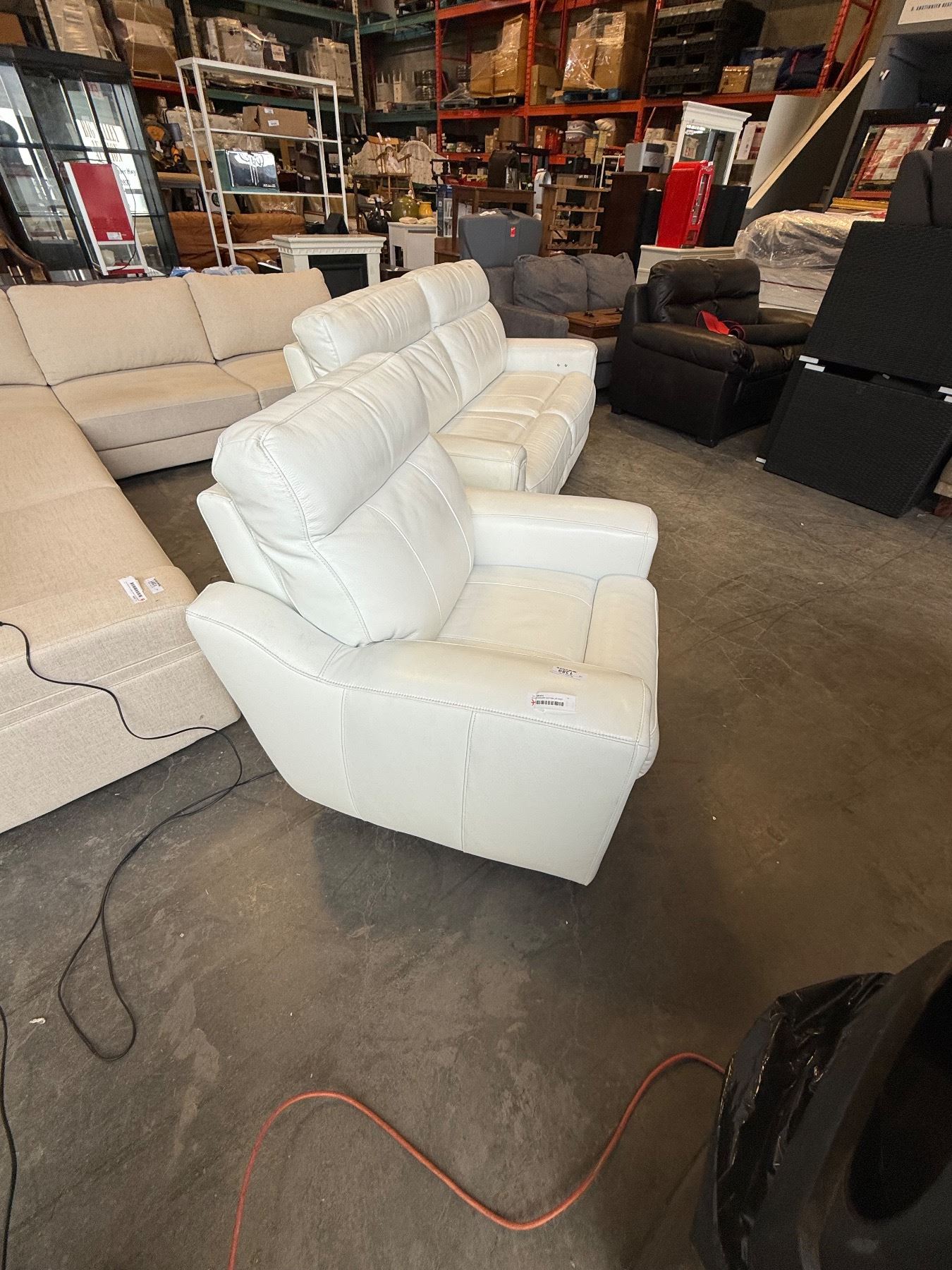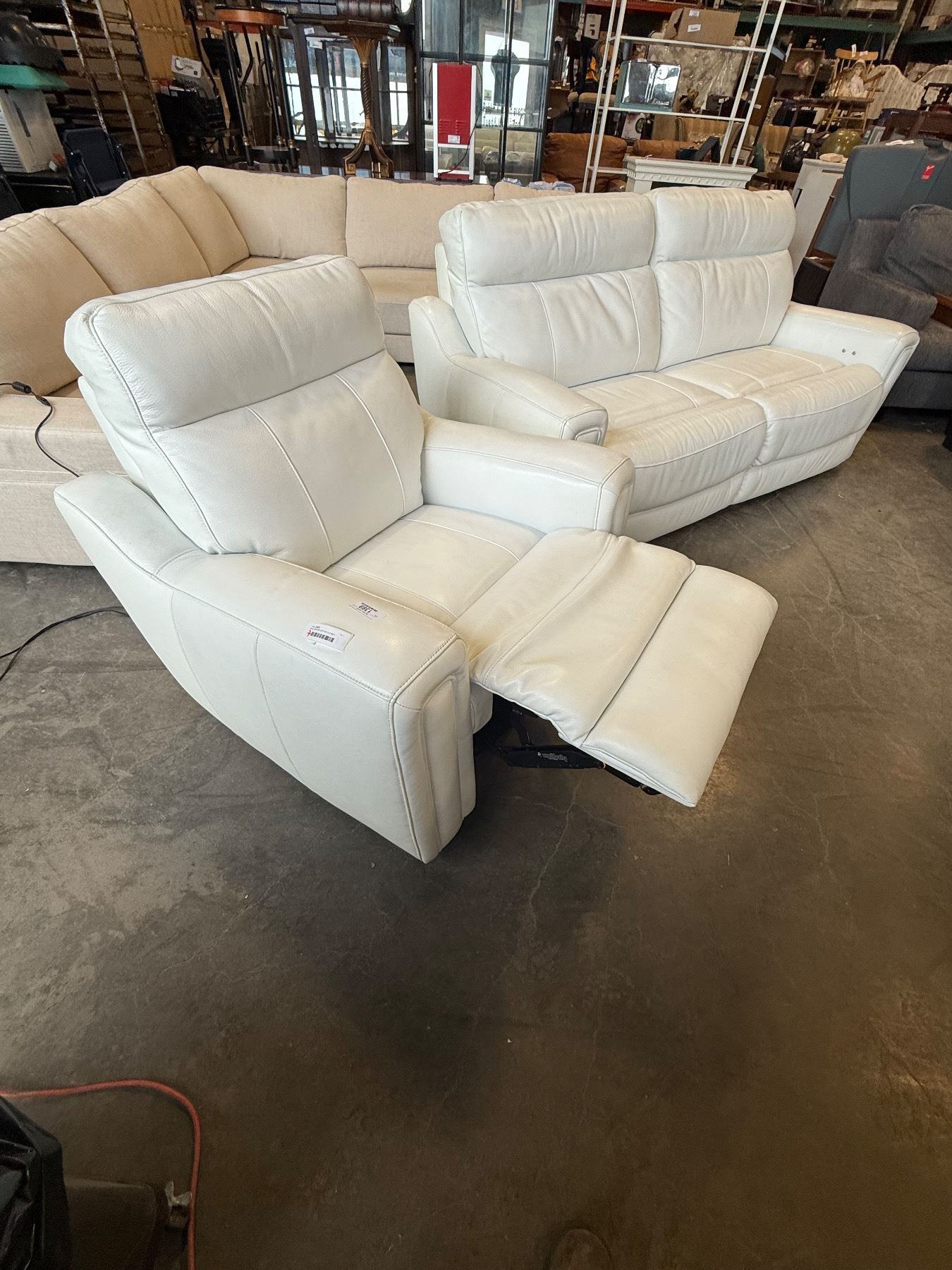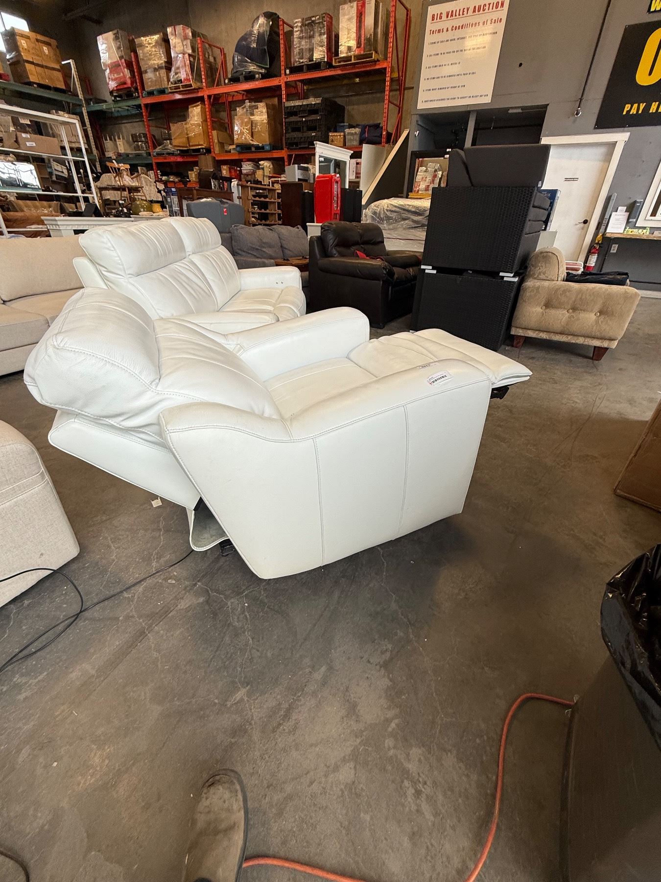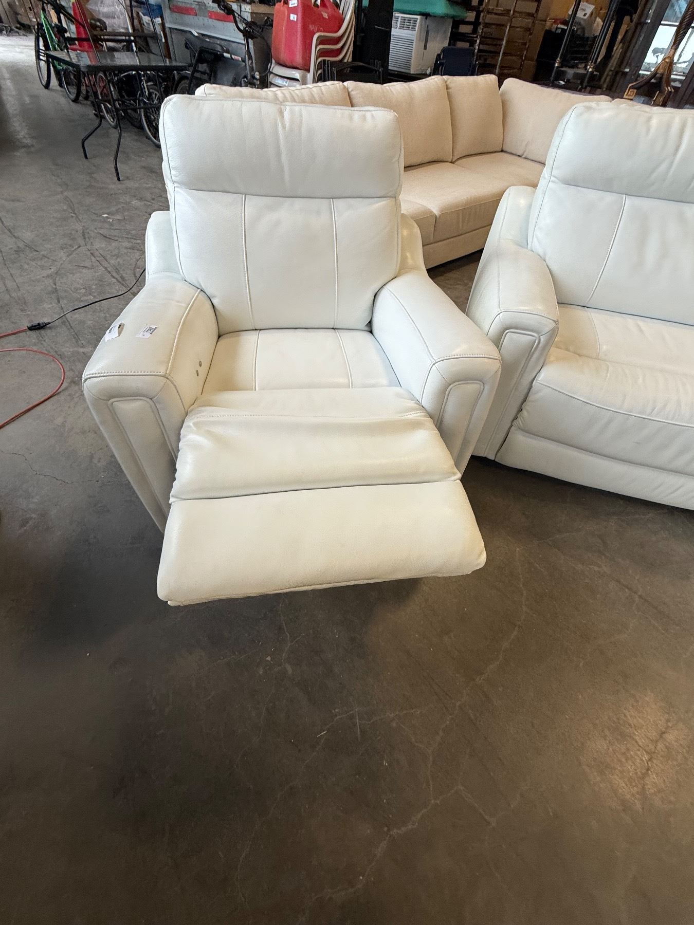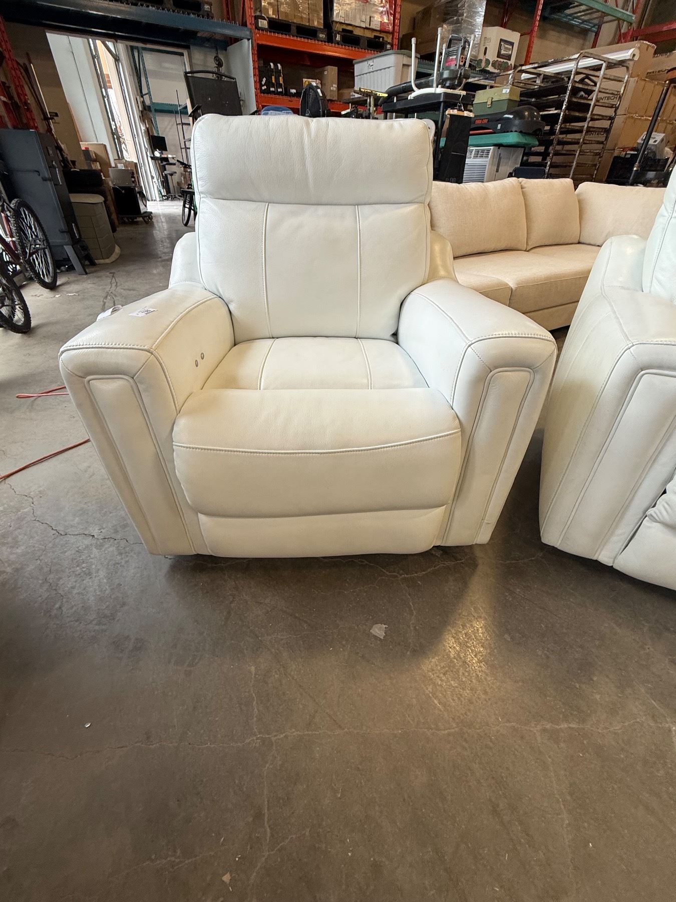 WHITE GENUINE LEATHER LAZYBOY ELECTRIC PUSH BUTTON RECLING ARMCHAIR