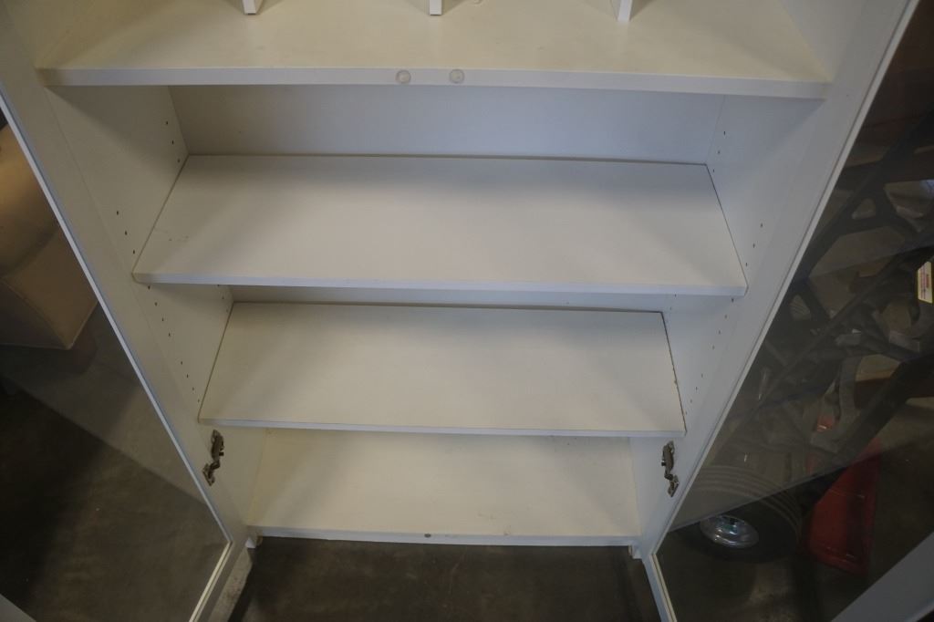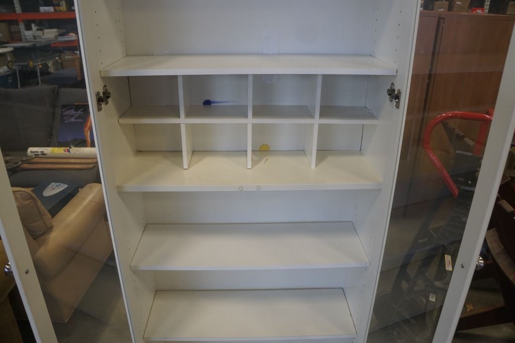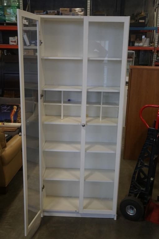 WHITE GLASS DOOR CABINET - APPX 80 INCHES TALL