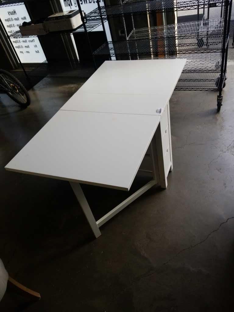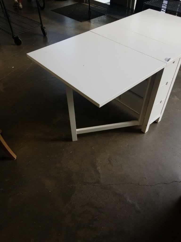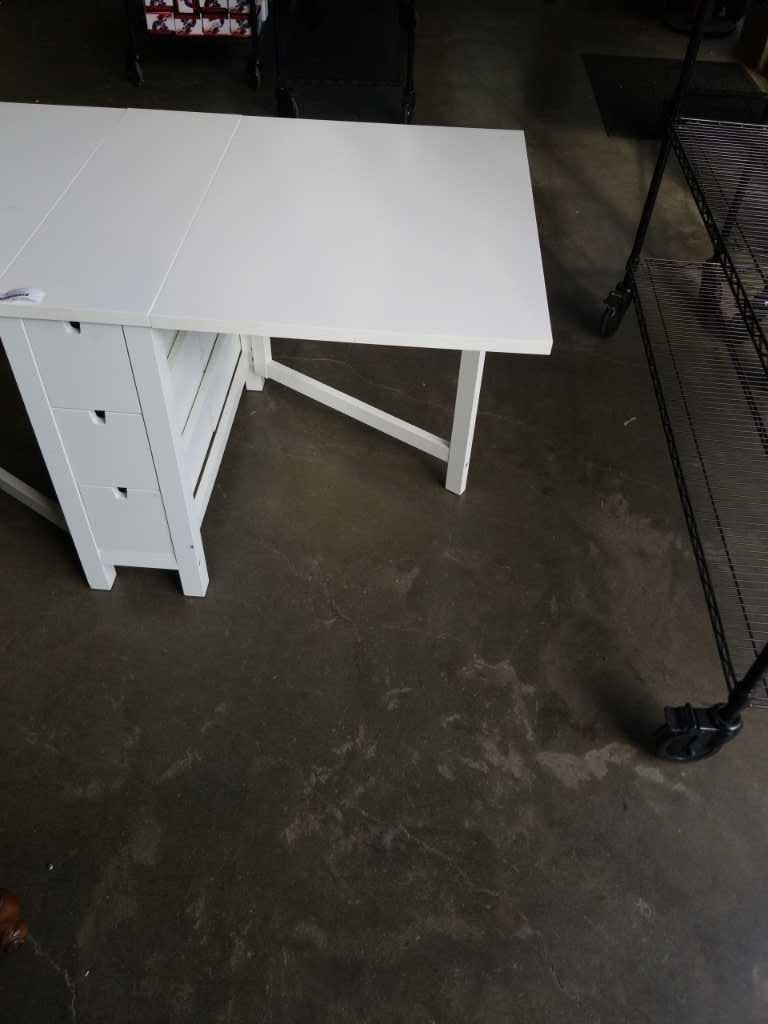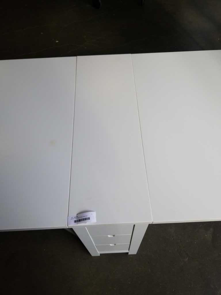 WHITE IKEA DROP SIDE TABLE W/ DRAWERS