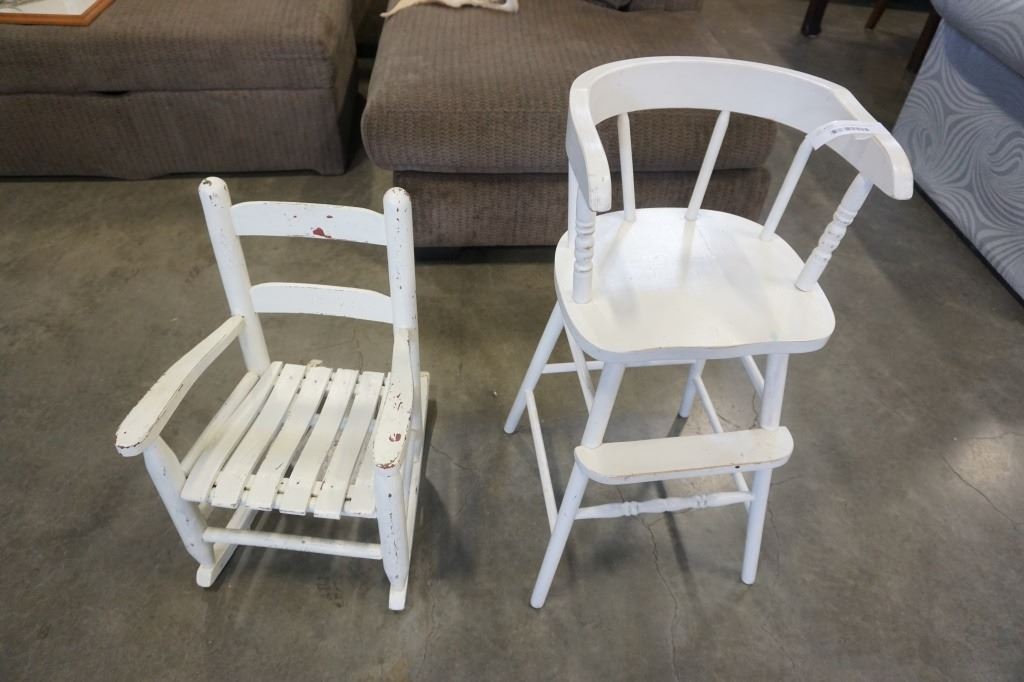 WHITE KIDS ROCKING CHAIR AND STOOL