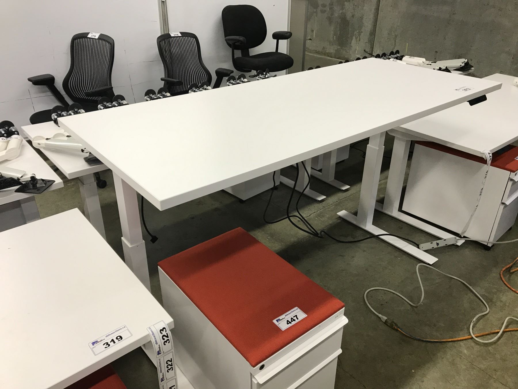 WHITE KNOLL TONE 8' SIT/STAND ELECTRIC ADJUSTABLE HEIGHT TABLE WITH CABLE MANAGEMENT