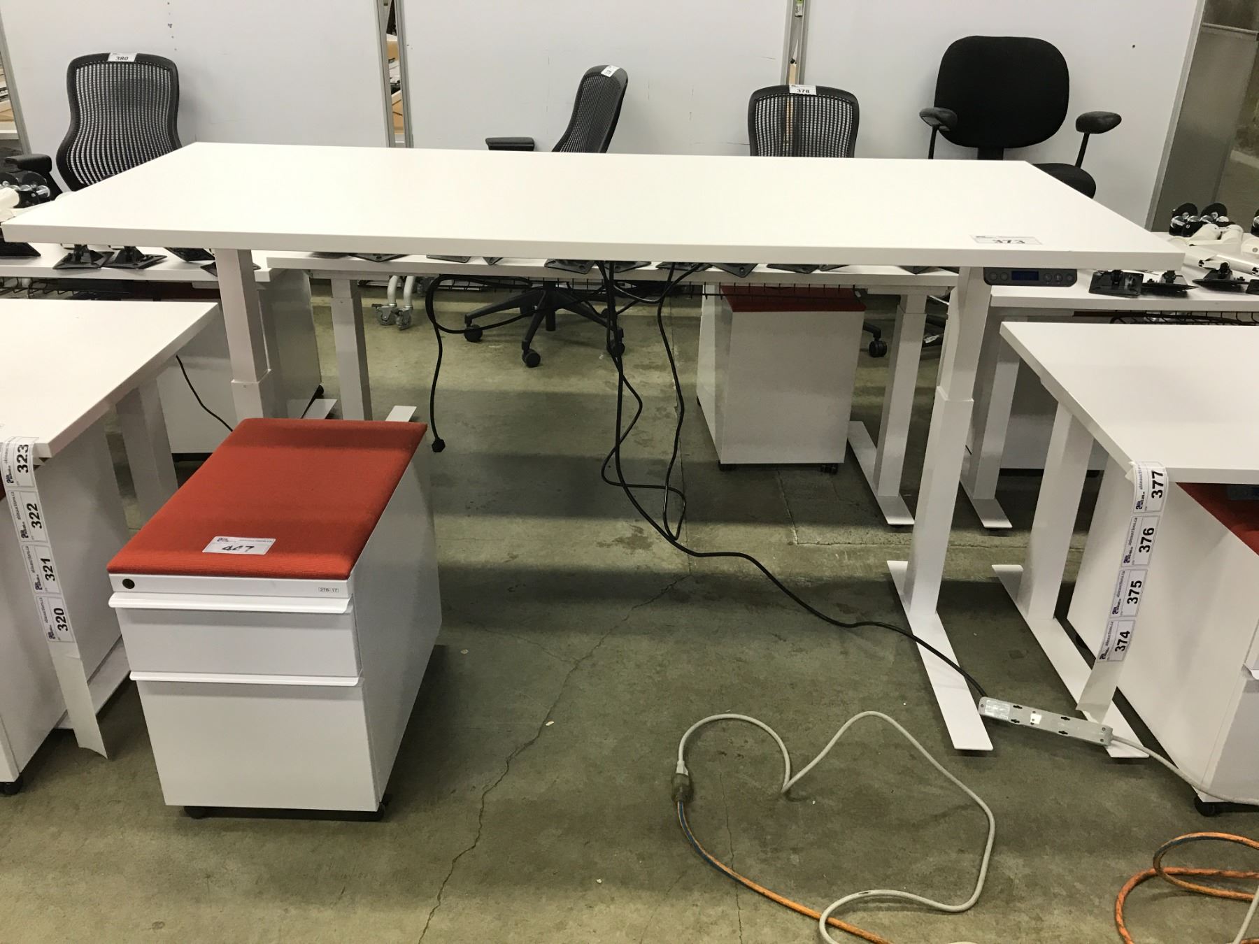 WHITE KNOLL TONE 8' SIT/STAND ELECTRIC ADJUSTABLE HEIGHT TABLE WITH CABLE MANAGEMENT