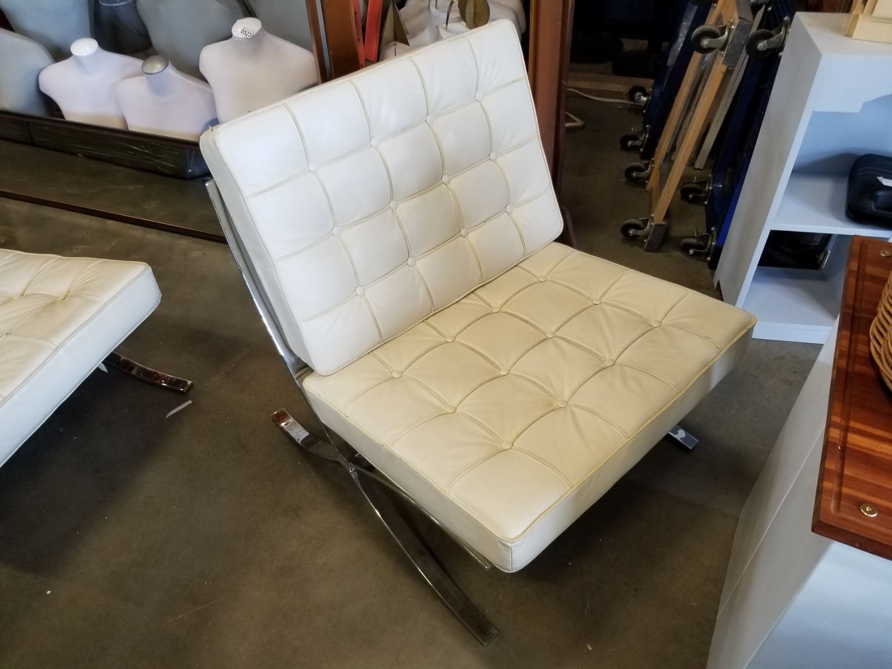 WHITE LEATHER AND METAL LOUNGE CHAIR