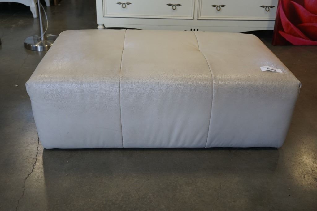 WHITE LEATHER OTTOMAN - 42 X 26 X 14 INCHES TALL