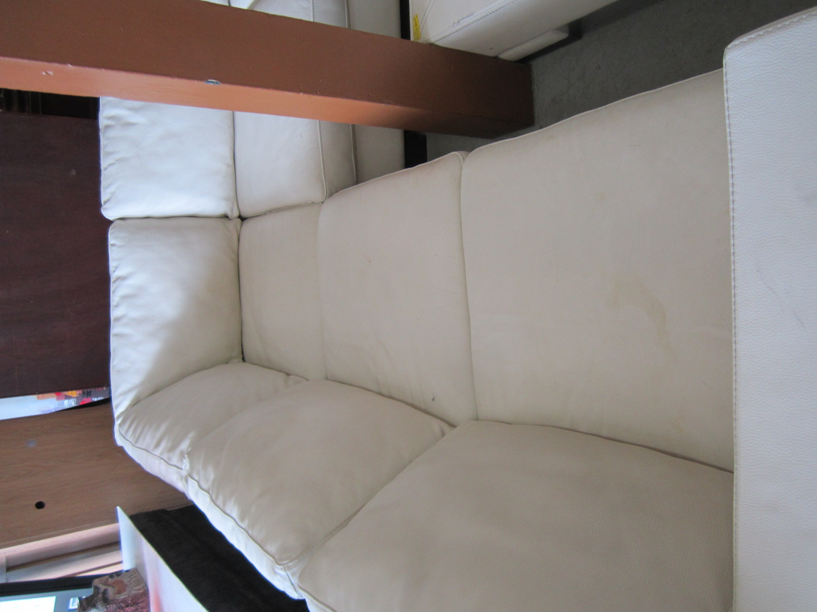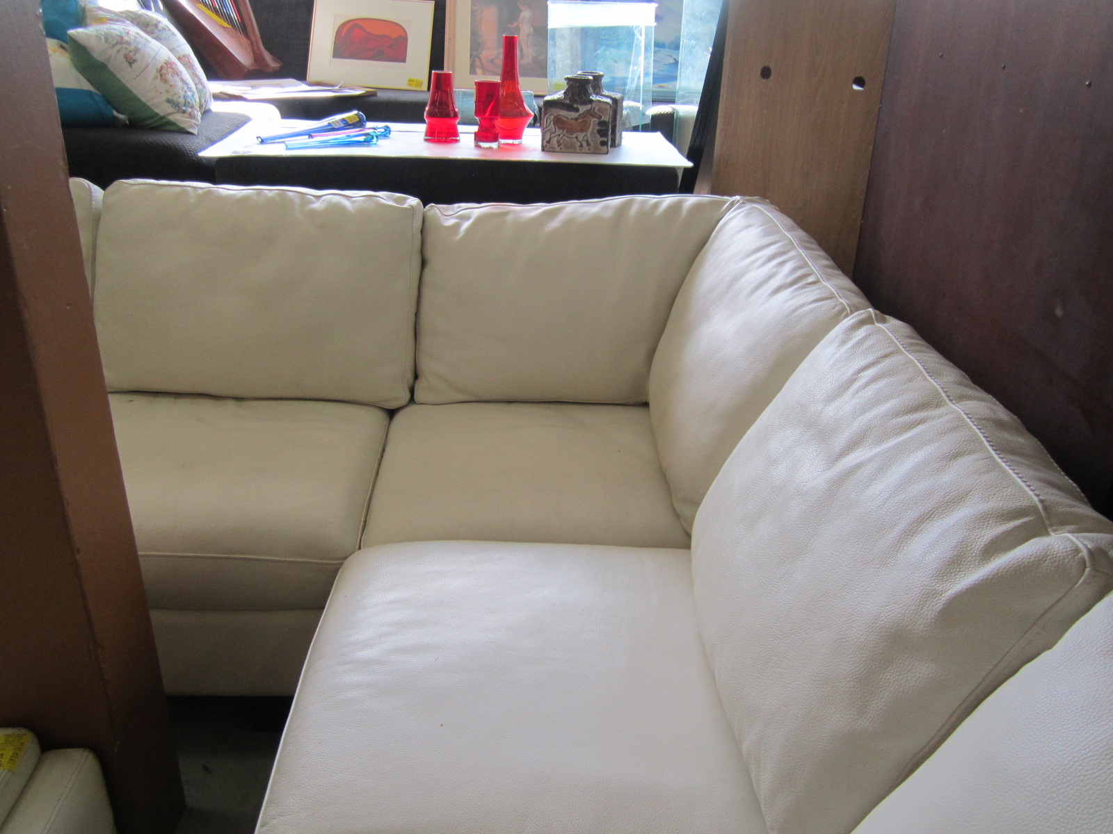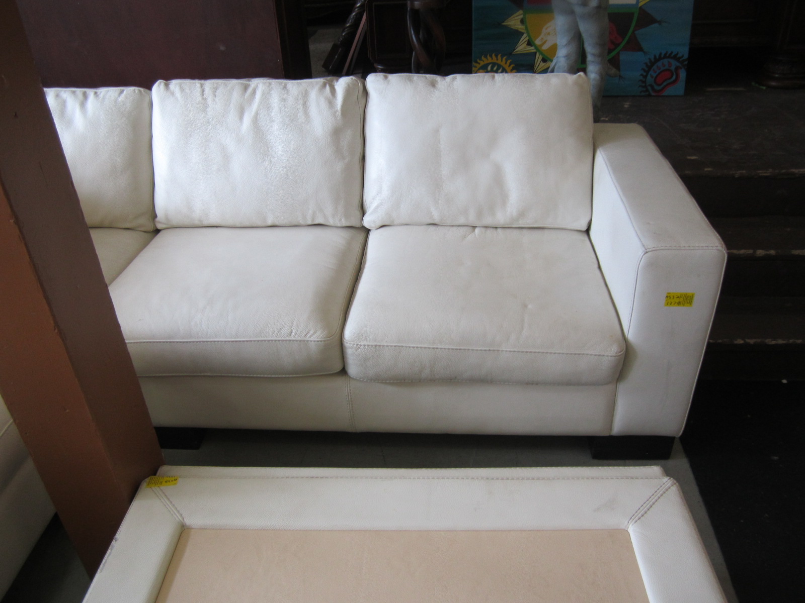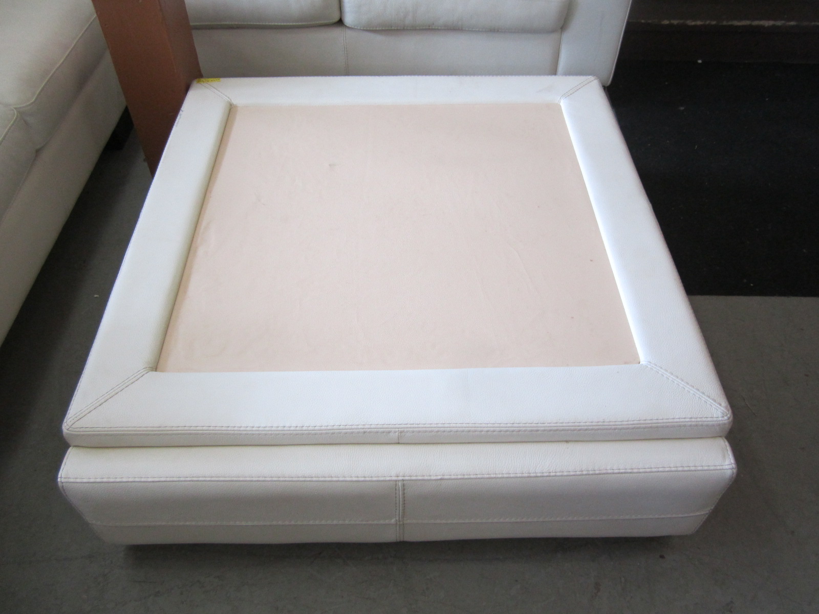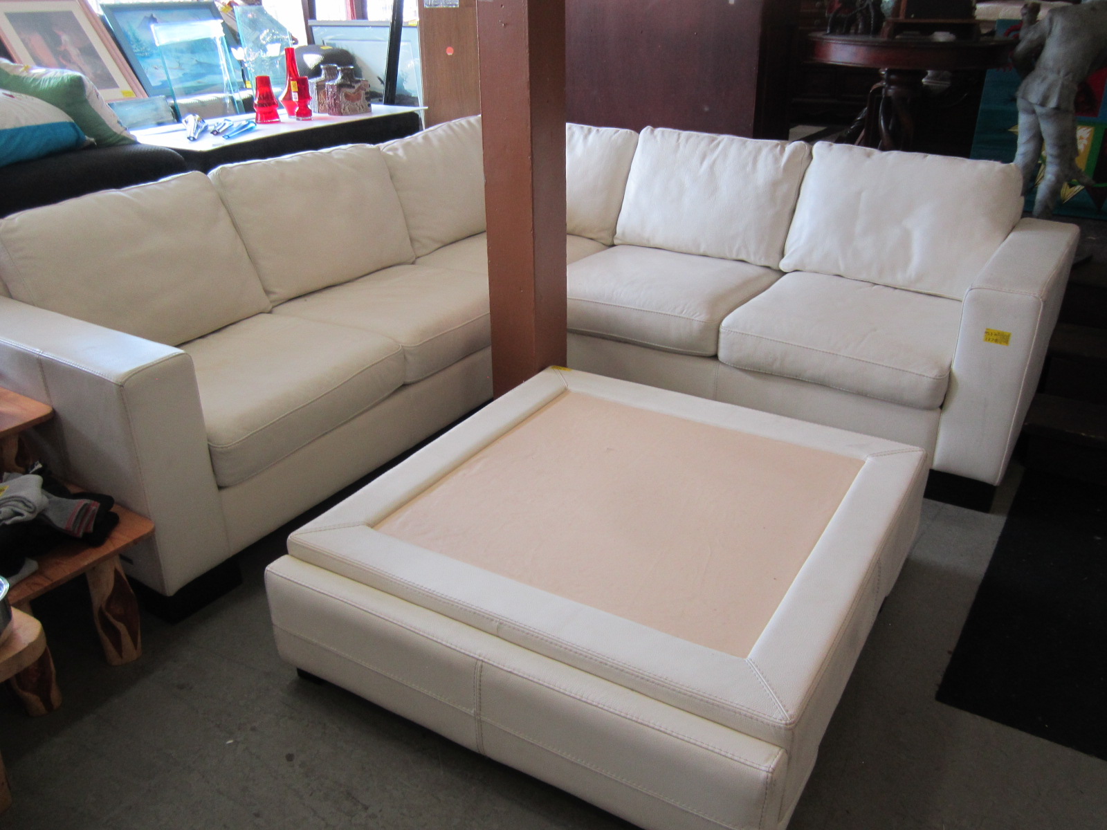 WHITE LEATHER SECTIONAL SOFA & LG. CENTER OTTOMAN/COFFEE TABLE