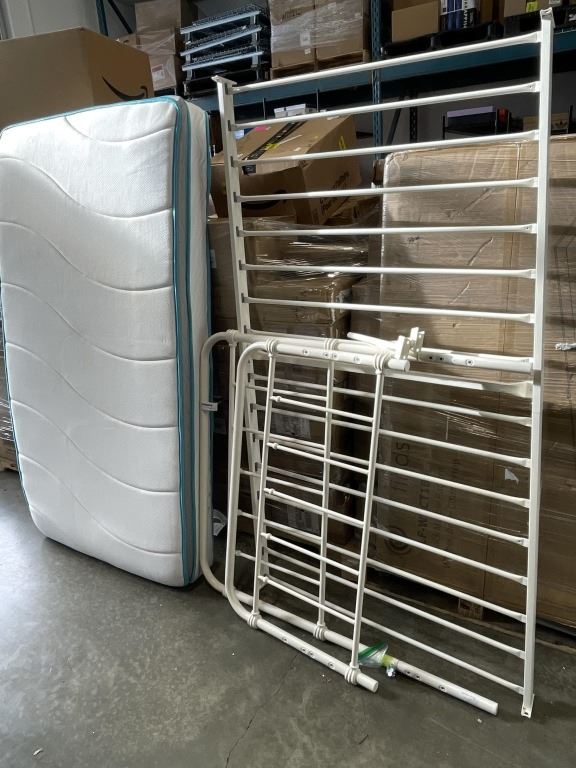 WHITE METAL SINGLE SIZE BEDFRAME WITH MATTRESS
