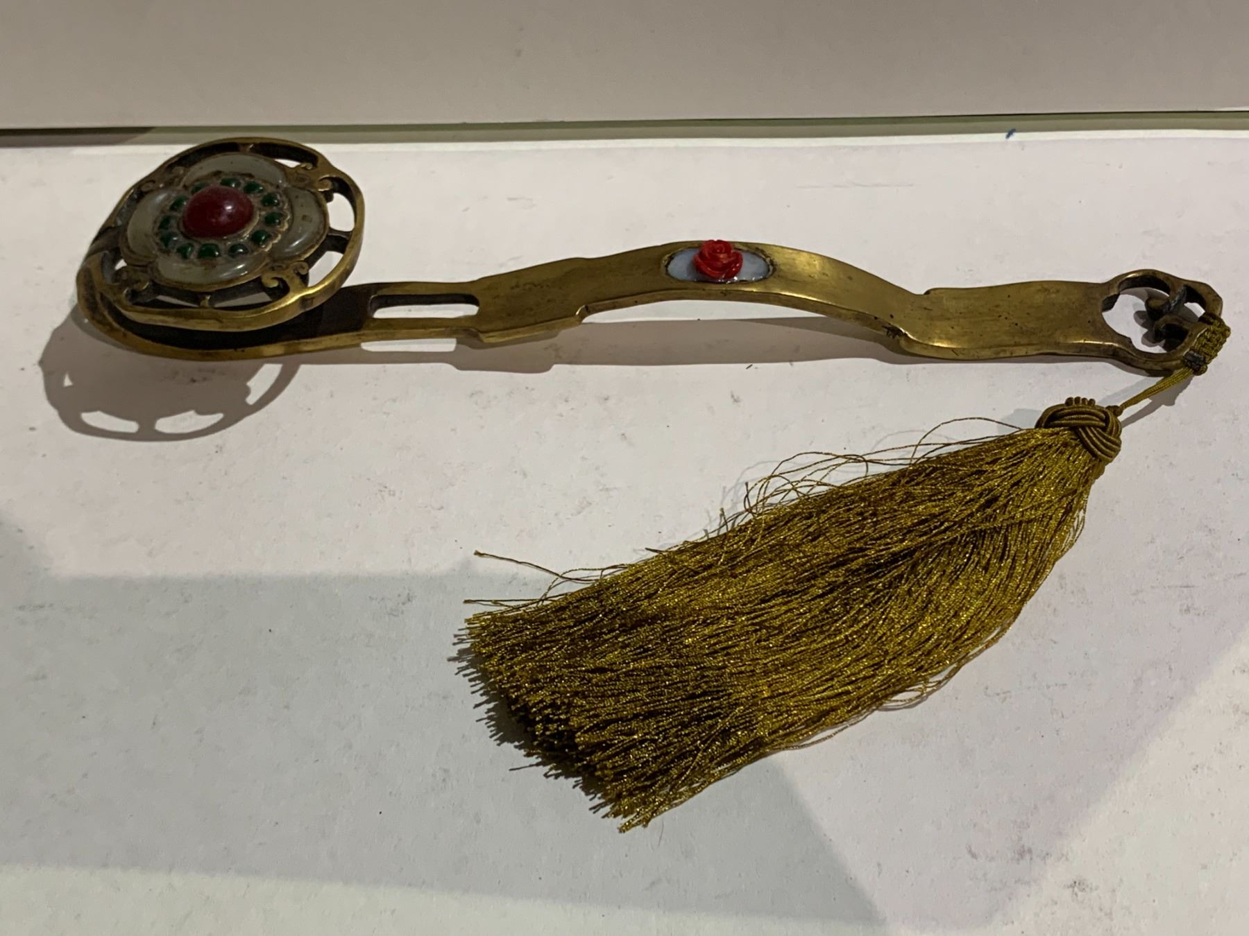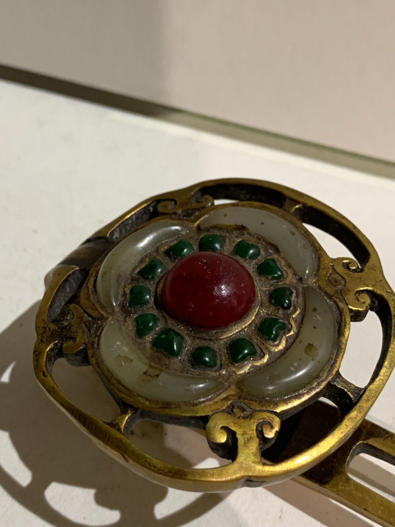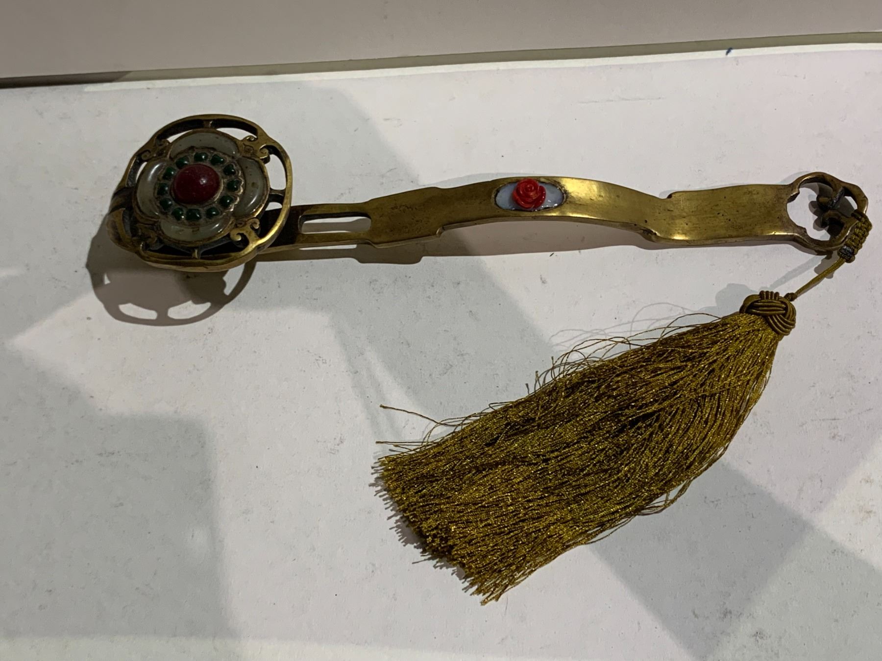 WHITE NEPHRITE JADE INLAID COPPER SCEPTRE
