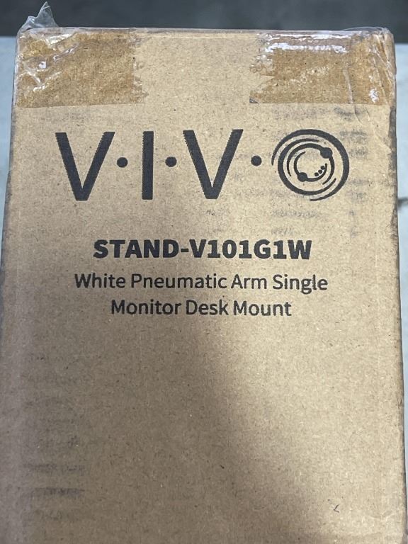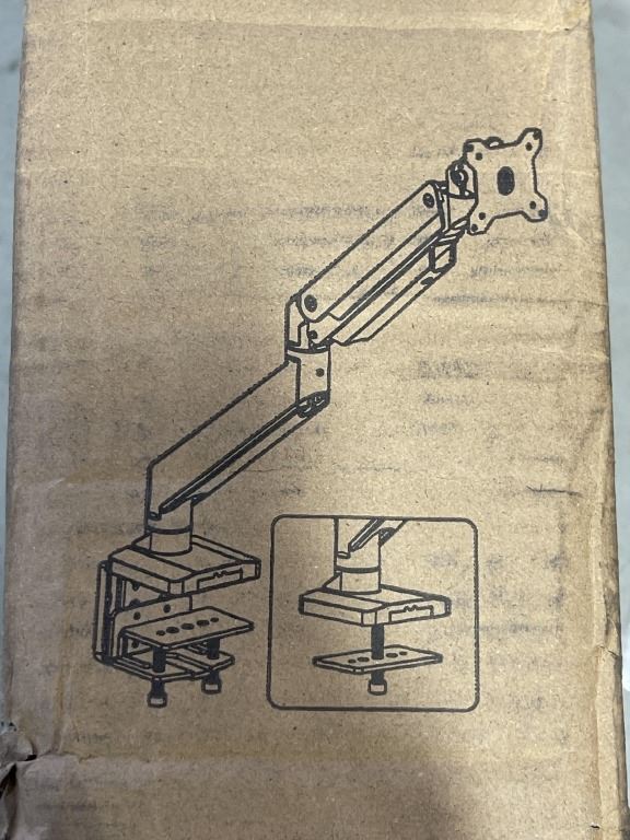 WHITE PNEUMATIC ARM SINGLE MONITOR DESK MOUNT AND BLACK CLAMP ON KEYBOARD TRAY