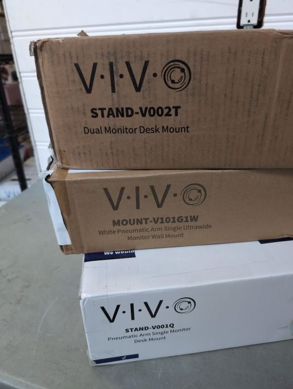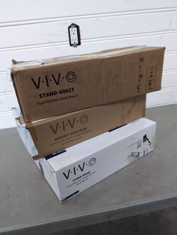 WHITE PNEUMATIC ARM SINGLE ULTRAWIDE MONITOR WALL MOUNT, PNEUMATIC ARM SINGLE MONITOR DESK MOUNT AND DUAL MONITOR DESK MOUNT