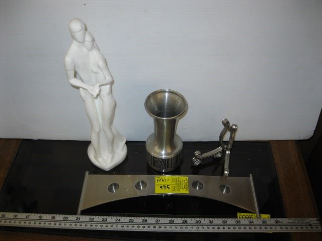 WHITE ROYAL DOULTON "IMAGES" FIGURINE, 3 PEWTER PIECES