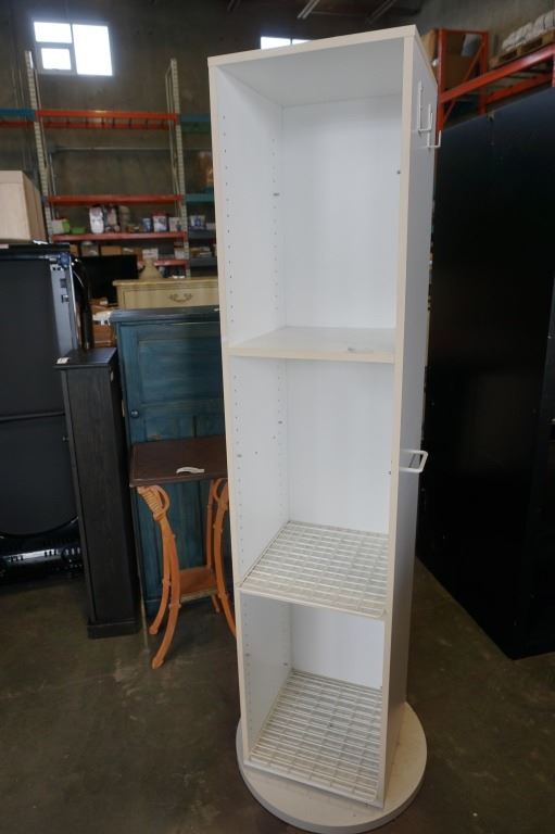 WHITE SPINNING SHELF WITH WIRE GRID SHELVES - 6 FOOT TALL