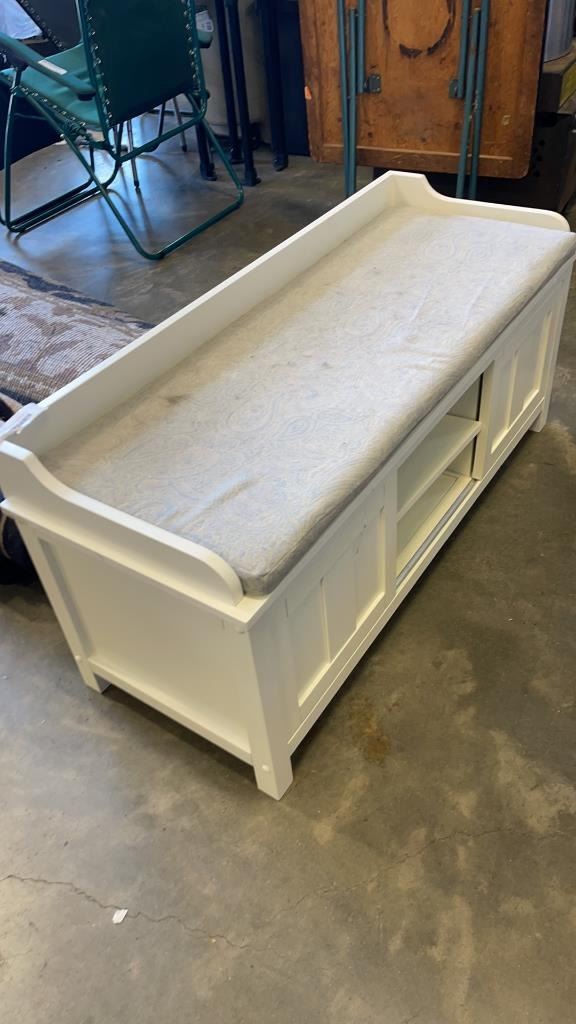 WHITE STORAGE BENCH WITH CUSHION