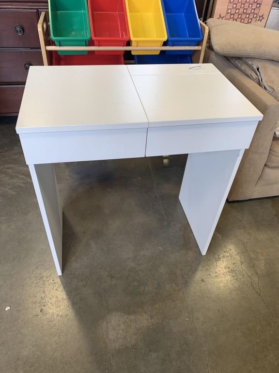 WHITE VANITY DESK WITH DRAWER AND FLIP UP MIRROR