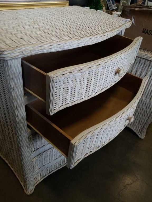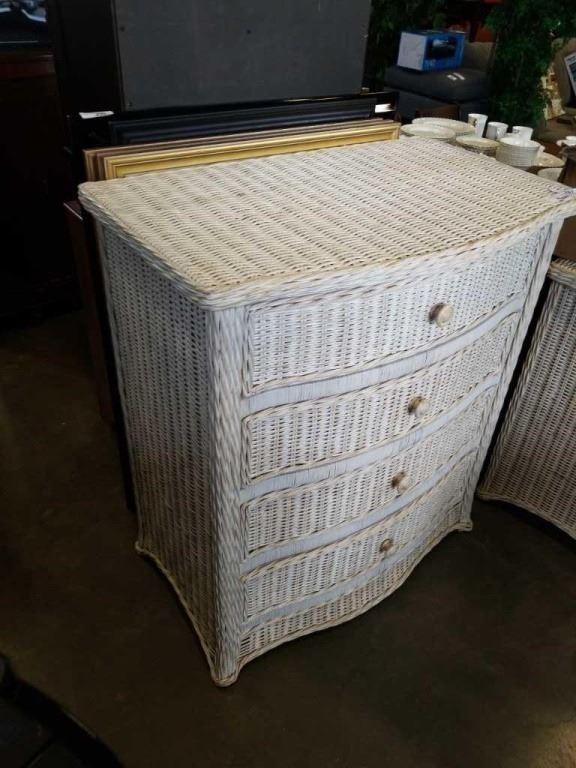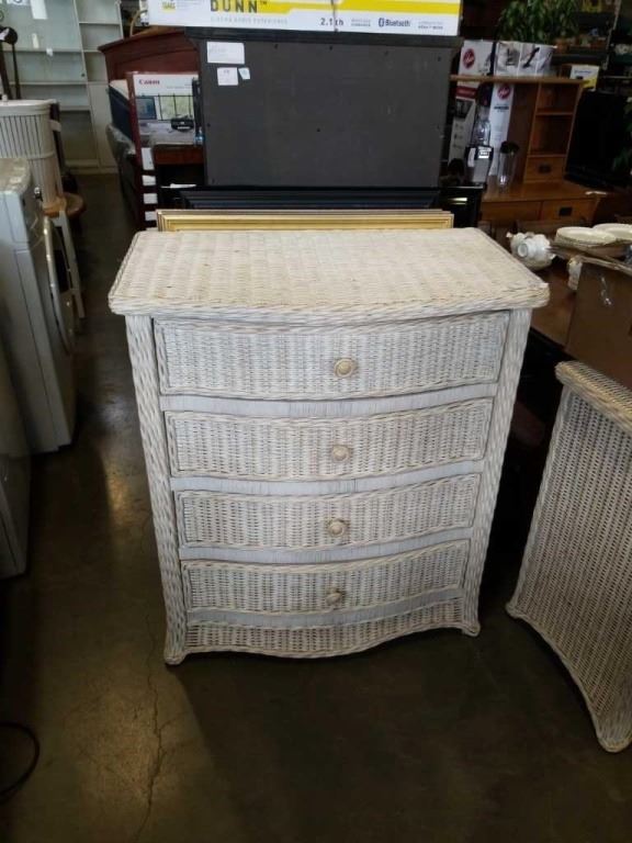WHITE WICKER 4 DRAWER CHEST OF DRAWERS
