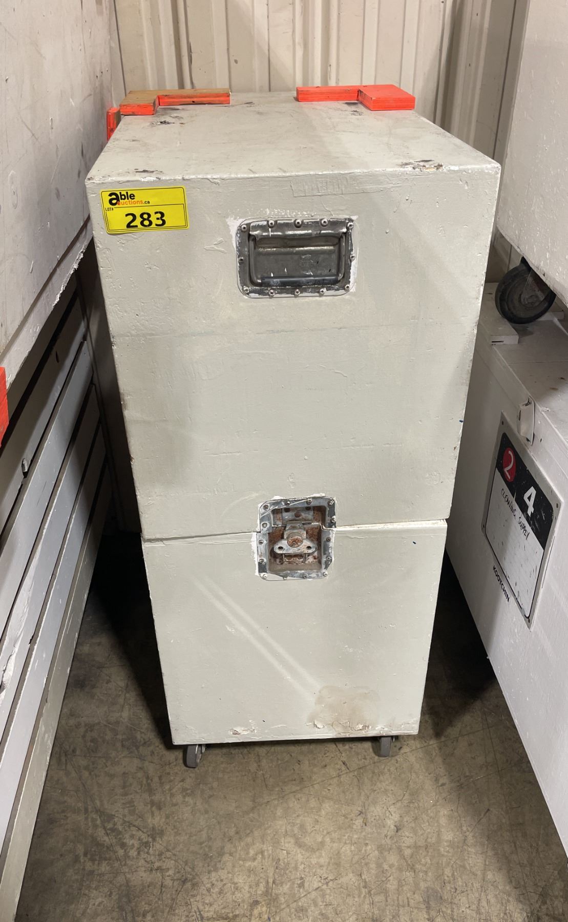 WHITE WOODEN MOBILE 30"W X 20"W X 48"H INDUSTRIAL STORAGE CRATE *EMPTY*
